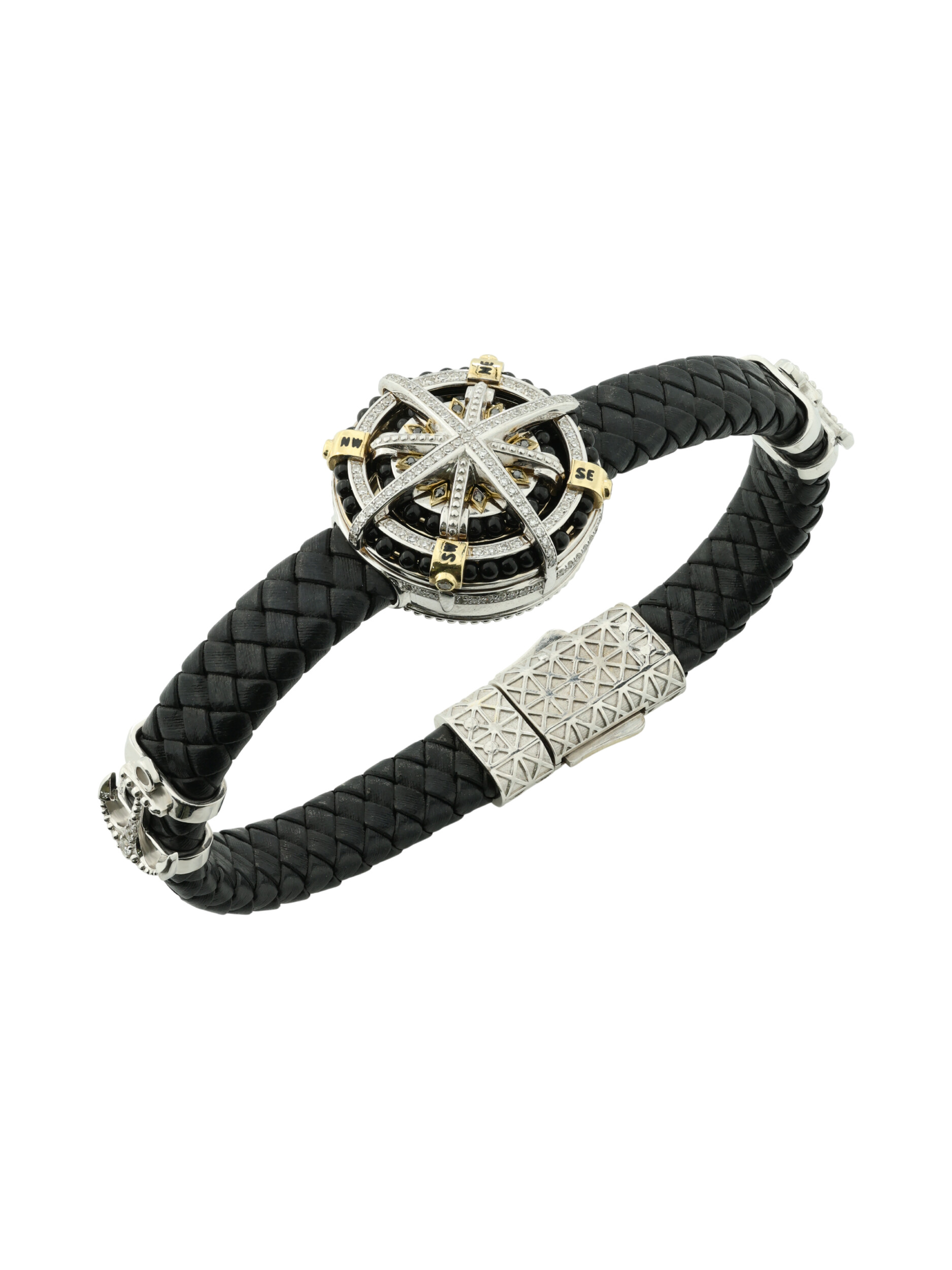 Браслет из белого золота c эмалью, бриллиантами, кожаным шнурком и ониксом
