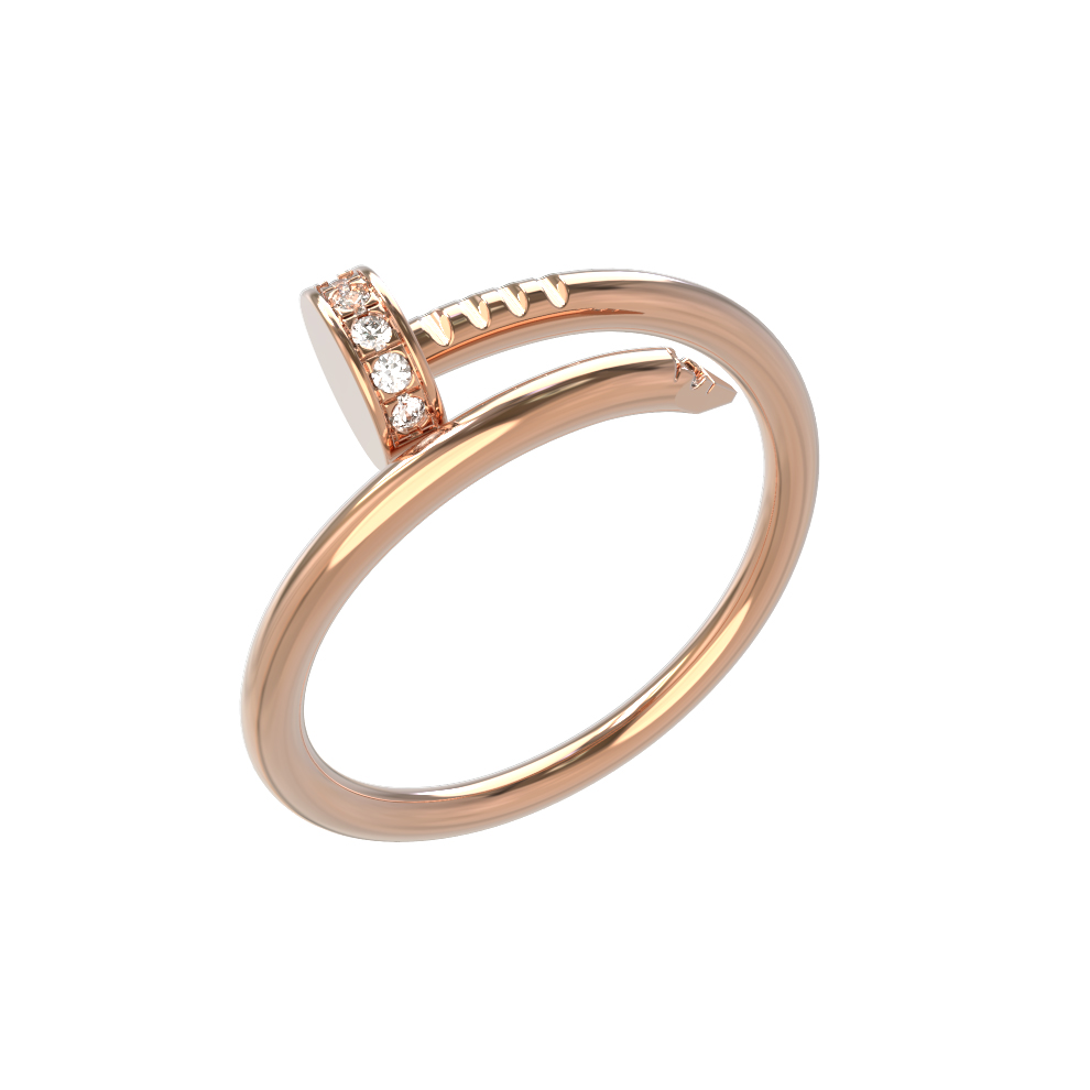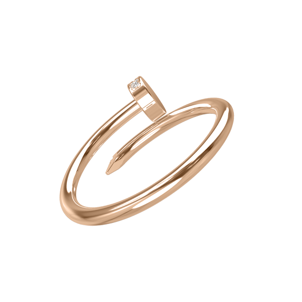 Кольцо из красного золота 585 пробы из коллекции De Luxe — Гвоздь — это выразительное украшение, выполненное в оригинальном дизайне в форме гвоздя. Лаконичная и смелая эстетика изделия подчеркивает индивидуальность своего обладателя, делая акцент на современной ювелирной моде. Аксессуар гармонично смотрится на руке, объединяя в себе дерзкую форму и классический драгоценный материал. На головке гвоздя расположено 9 сияющих бриллиантов круглой формы с белым цветом вставок, которые добавляют блеска и роскоши этому стильному украшению.