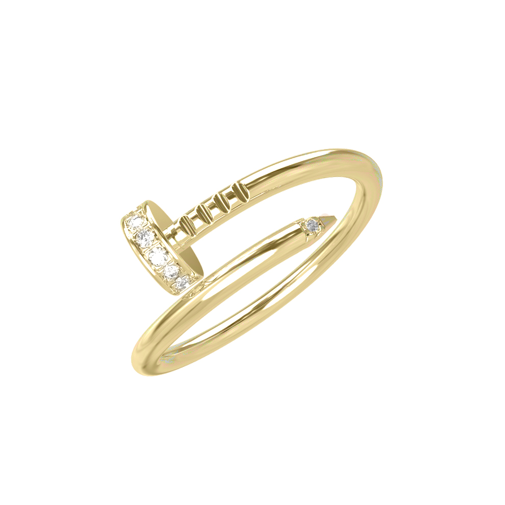 Кольцо из лимонного золота 585 пробы из коллекции De Luxe — Гвоздь станет ярким акцентом в вашем образе. Дизайн изделия выполнен в форме гвоздя, что придает украшению смелый и современный характер. Линии аксессуара выглядят изысканно и лаконично, подчеркивая статус и безупречный вкус владельца. Благородный оттенок лимонного золота гармонично сочетается с драгоценными вставками.