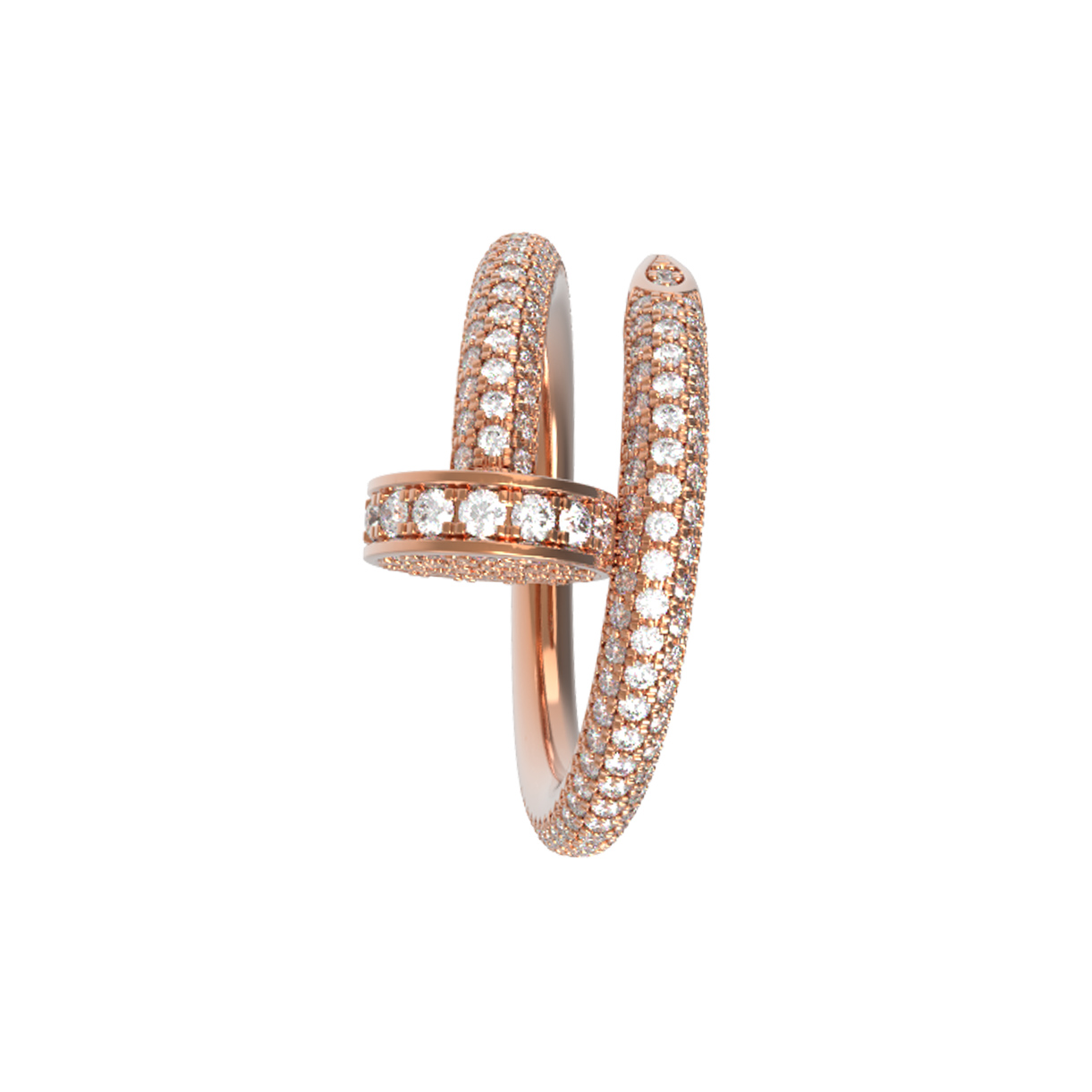 Центральным элементом композиции является впечатляющая россыпь камней: кольцо украшают 1486 бриллиантов круглой формы с классическим белым цветом вставок. Их невероятное количество превращает украшение в сияющий акцент, который притягивает взгляд при каждом движении. Такой дизайн делает аксессуар универсальным: он одинаково эффектно смотрится как на женщинах, так и на мужчинах, подчеркивая индивидуальность образа.
