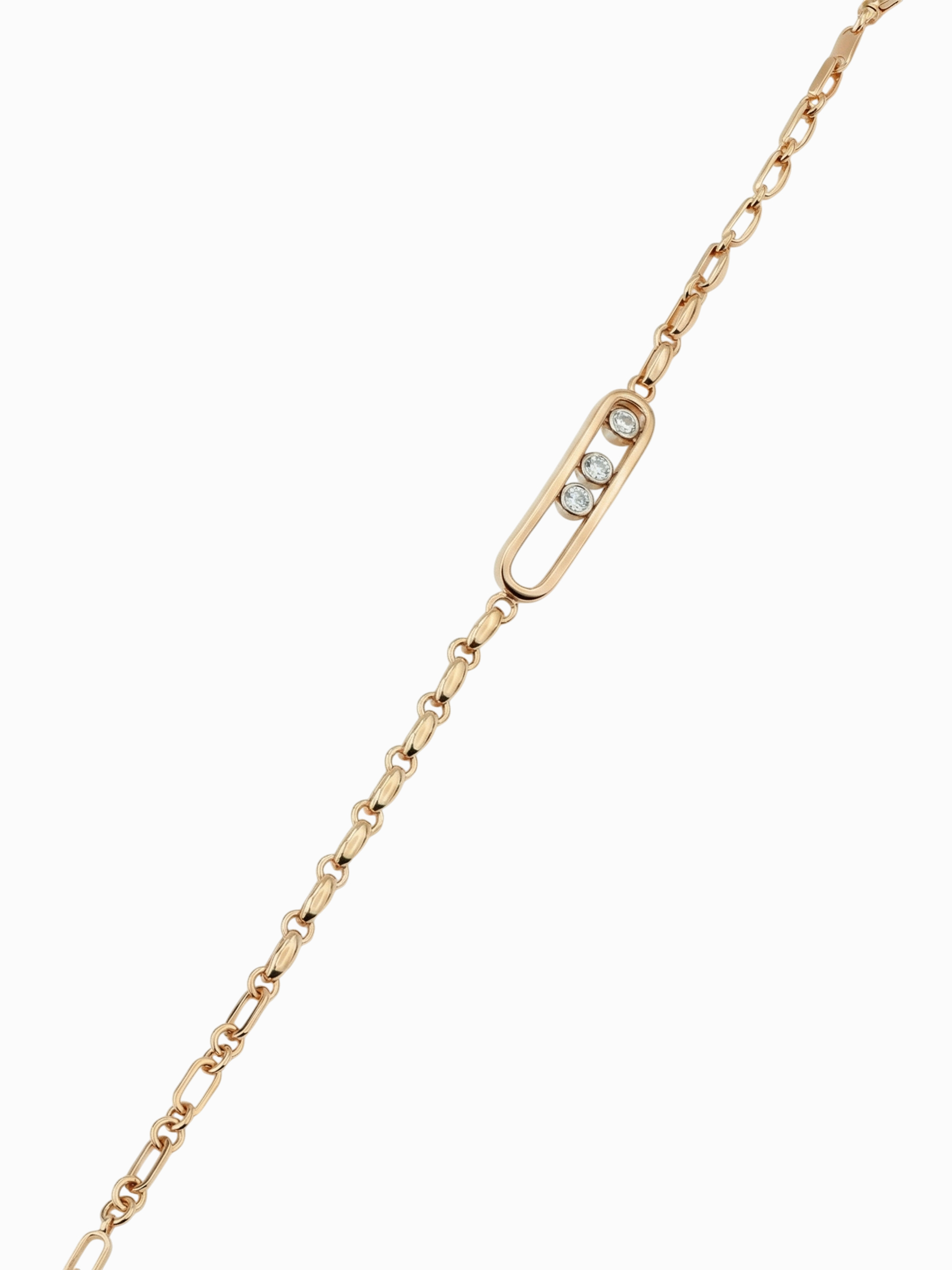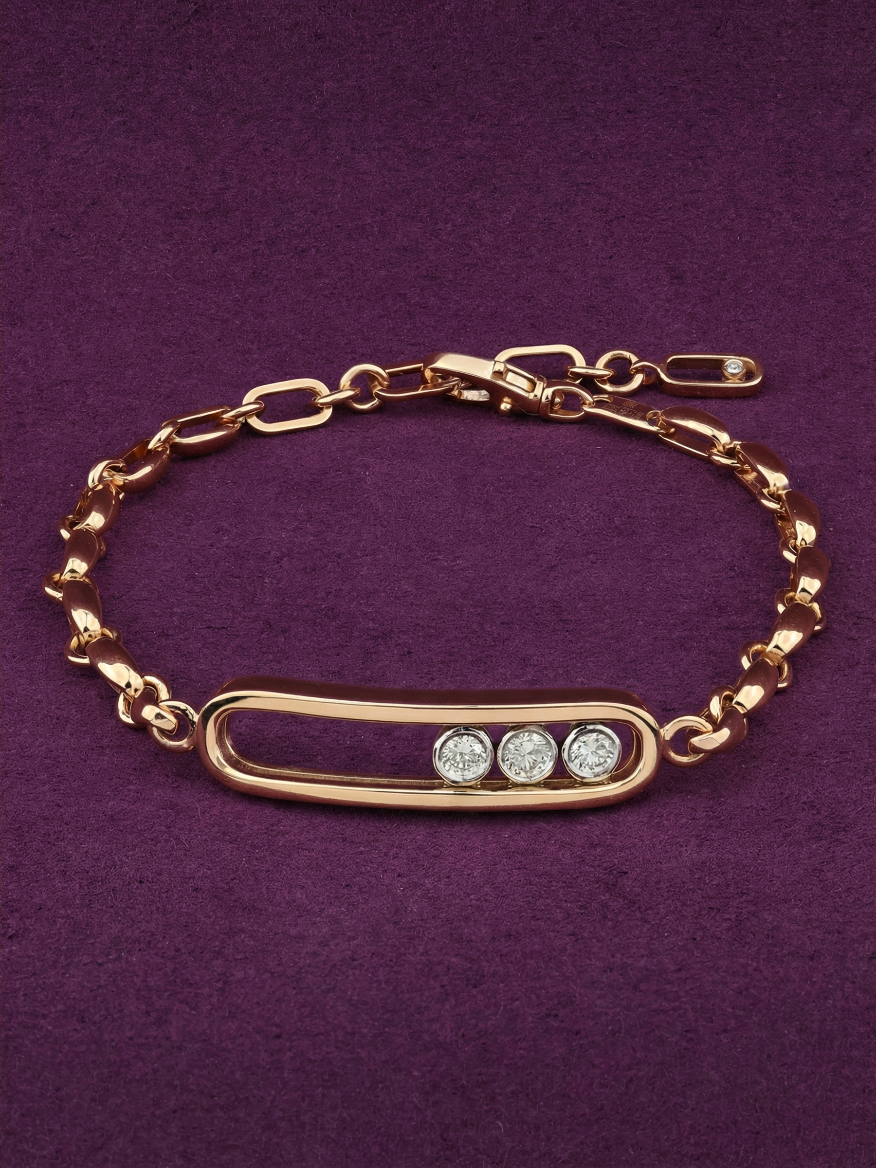 Данный аксессуар отличается универсальным дизайном, благодаря чему одинаково выигрышно смотрится как на женском, так и на мужском запястье. Тонкая и прочная цепочка обеспечивает комфорт при повседневном ношении, а продуманная геометрия центральной части изделия подчеркивает статус и безупречный вкус владельца. Бриллианты, инкрустированные в центральный элемент, наполняют украшение благородным блеском, который неизменно привлекает внимание. Этот браслет — идеальный выбор для тех, кто ценит в ювелирных украшениях сдержанность, качество исполнения и вневременной стиль. Позвольте себе добавить нотку роскоши в повседневность или подчеркнуть торжественность момента с помощью этого украшения.