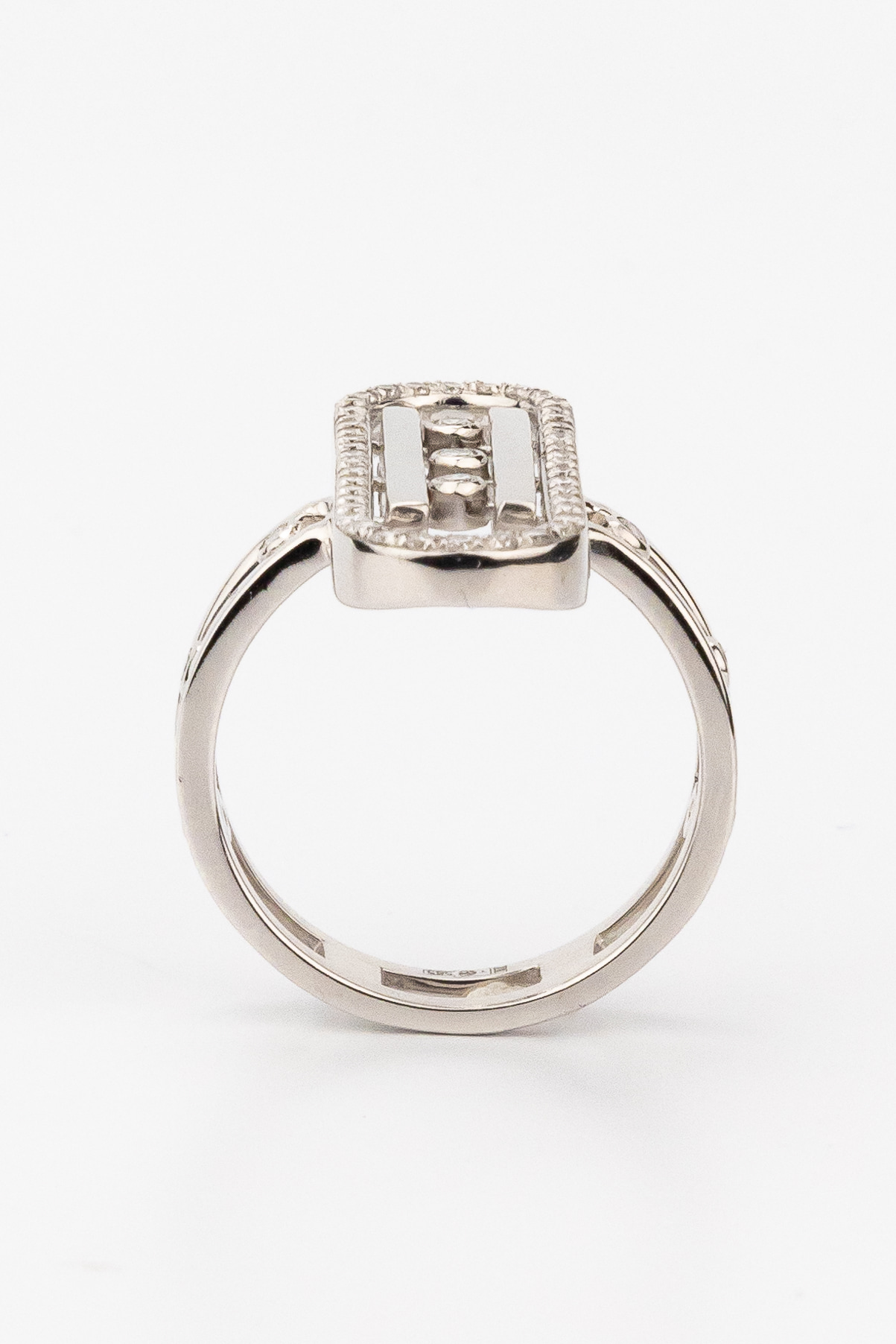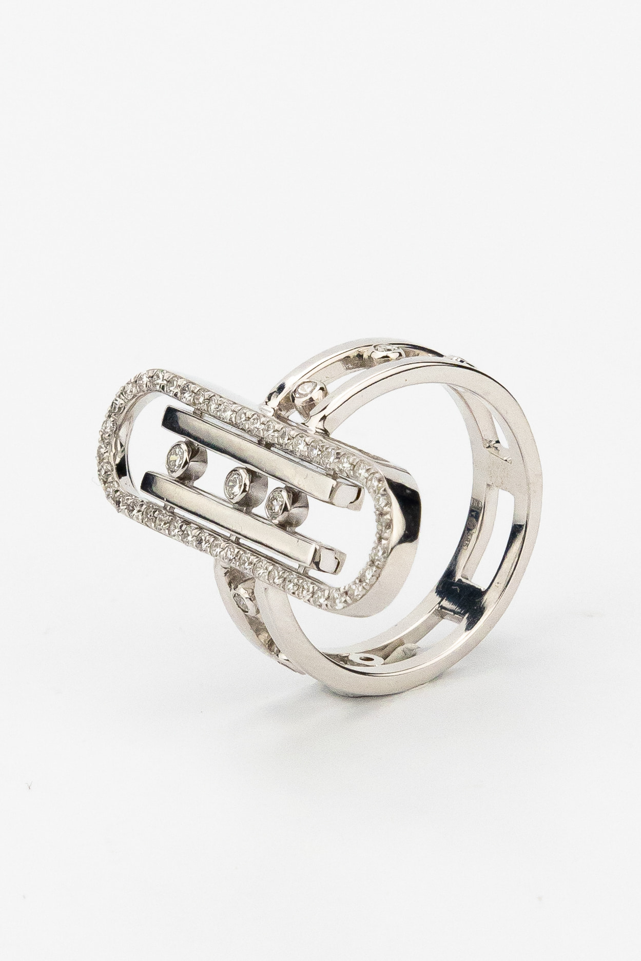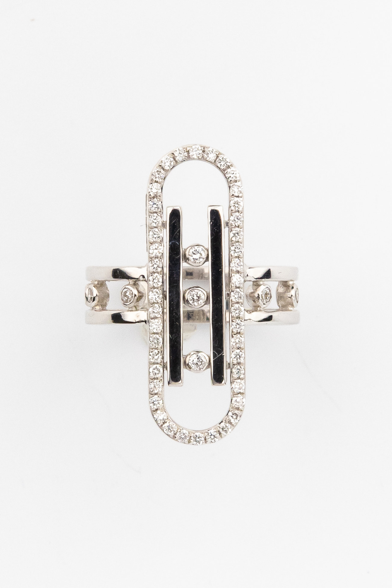 Центральный акцент композиции — оригинальный дизайн с элементами геометрии, который притягивает взгляд своей выверенной формой. Кольцо инкрустировано 53 бриллиантами круглой формы с чистым белым цветом, которые создают завораживающую игру света при каждом движении руки. Это ювелирное изделие гармонично дополнит как строгий деловой образ, так и вечерний наряд, подчеркивая индивидуальность владельца. Модель является универсальной и подходит как для женщин, так и для мужчин.