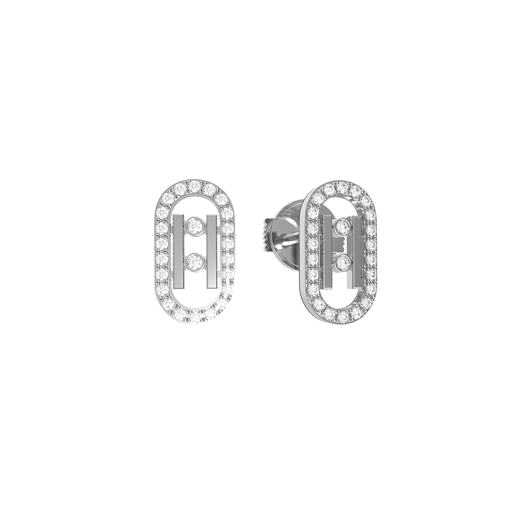 Серьги из белого золота 585 пробы из коллекции De Luxe — Движение — это гармоничное воплощение эстетики и высокого ювелирного искусства. Геометрический дизайн украшения притягивает взгляд своей лаконичностью и безупречными линиями, создавая современный и динамичный образ. Центральным акцентом изделия выступает композиция из 48 вставок, где каждый бриллиант круглой формы с белым цветом вставок подчеркивает статусность и изысканный вкус своего владельца.