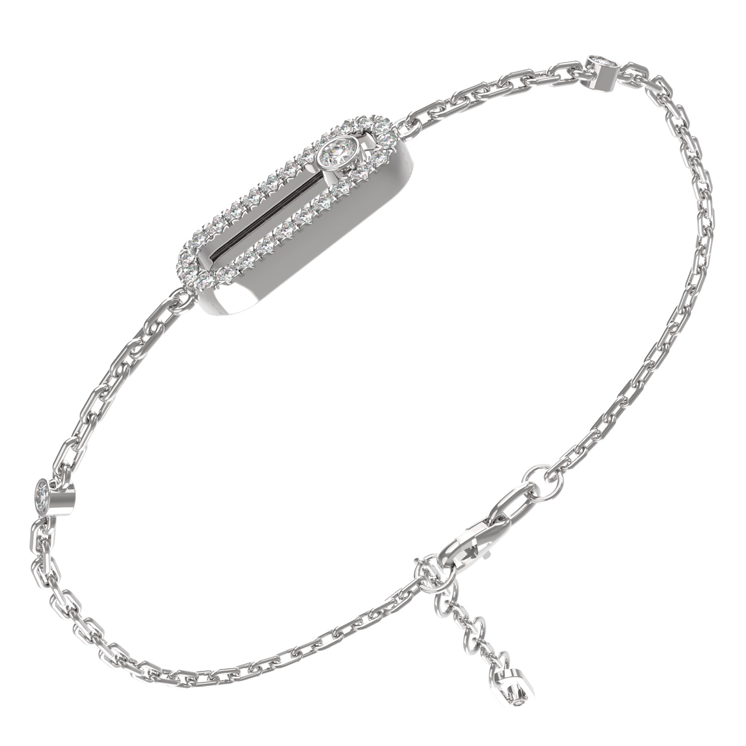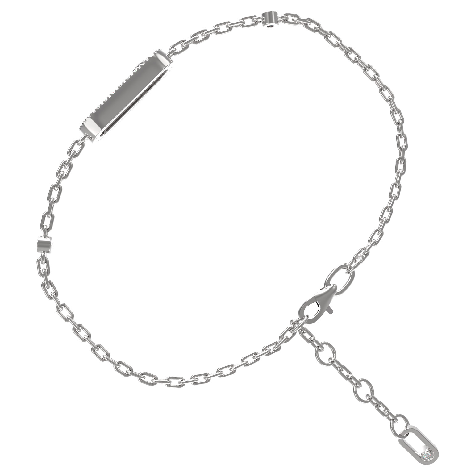 Центральным элементом композиции является изящная деталь, украшенная 29 бриллиантами круглой огранки. Белый цвет вставок гармонично сочетается с холодным блеском белого золота, создавая игру света, которая притягивает взгляды. Использование драгоценных камней придает украшению особую ценность и выразительность. Браслет отличается лаконичным исполнением и продуманной конструкцией цепи, обеспечивающей комфортную посадку на запястье.
