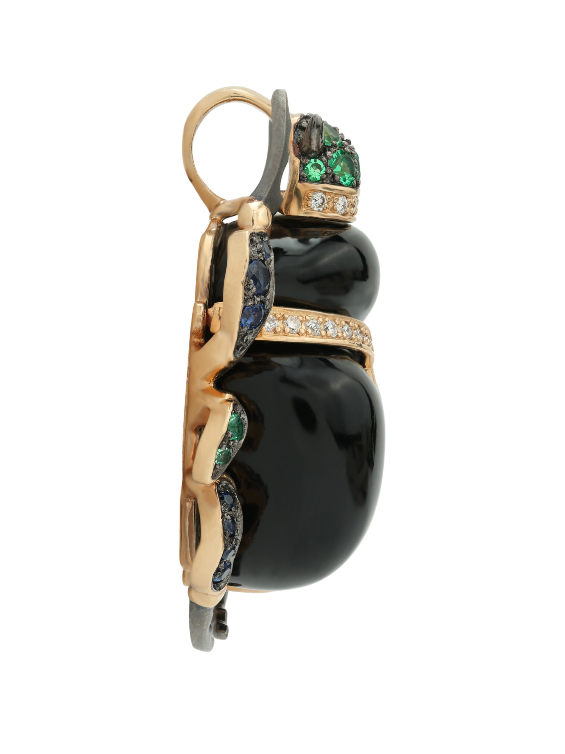Подвеска из золота c бриллиантами, сапфиром, изумрудом и ониксом