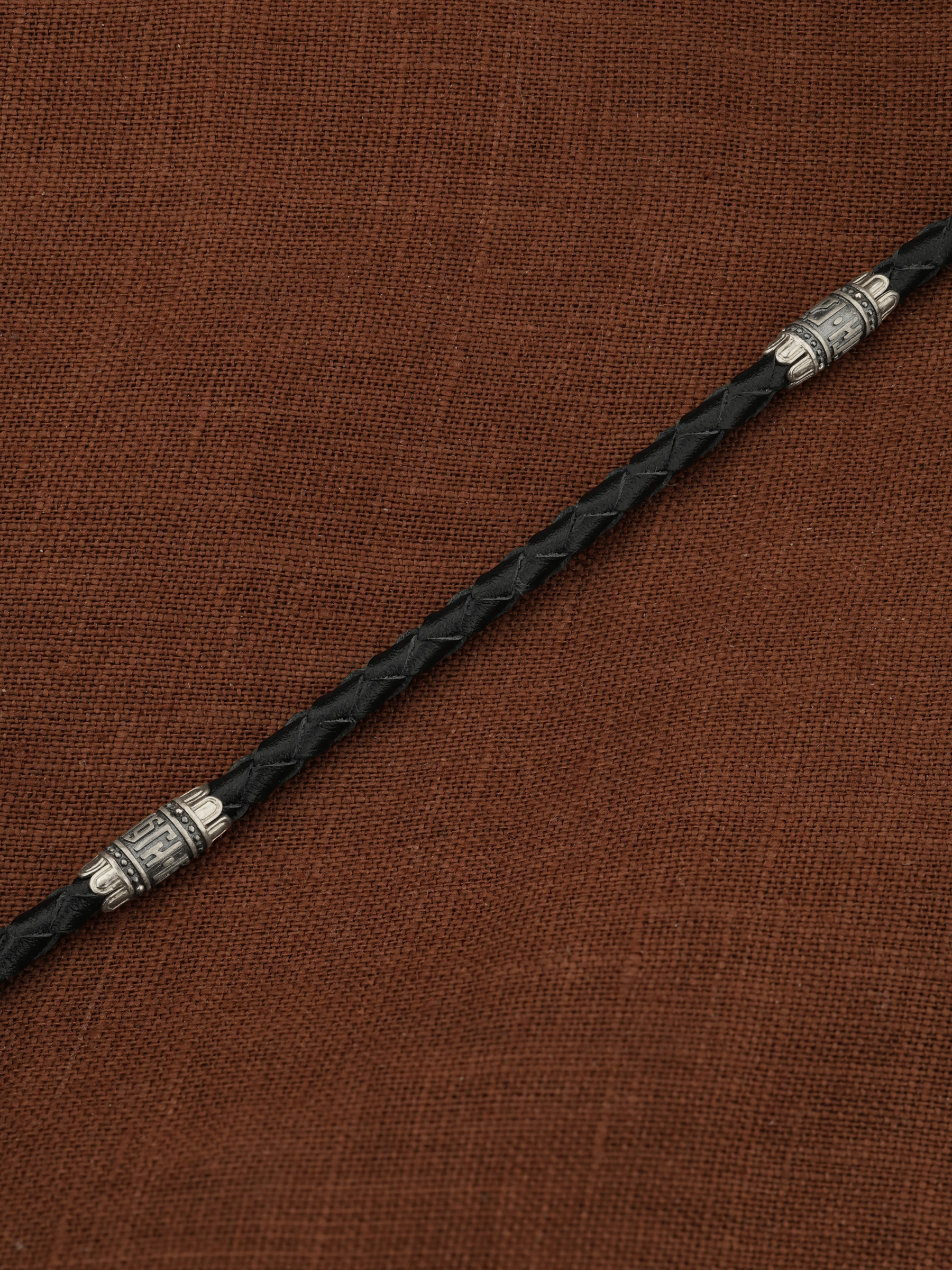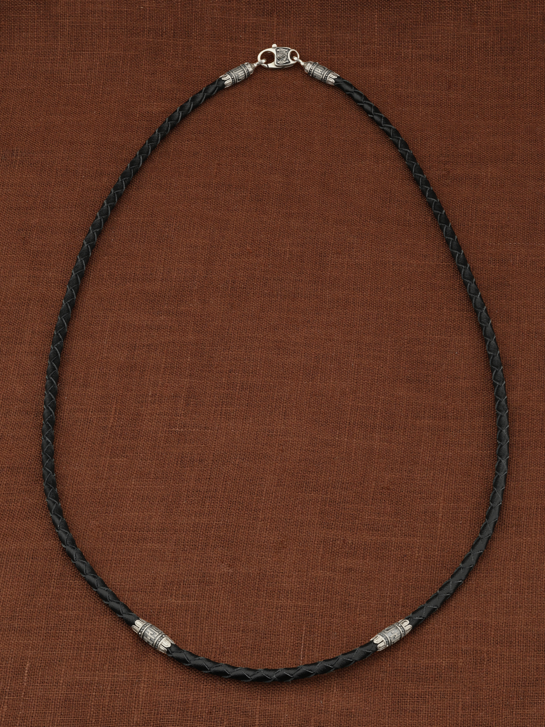Гайтан из белого золота c кожаным шнурком