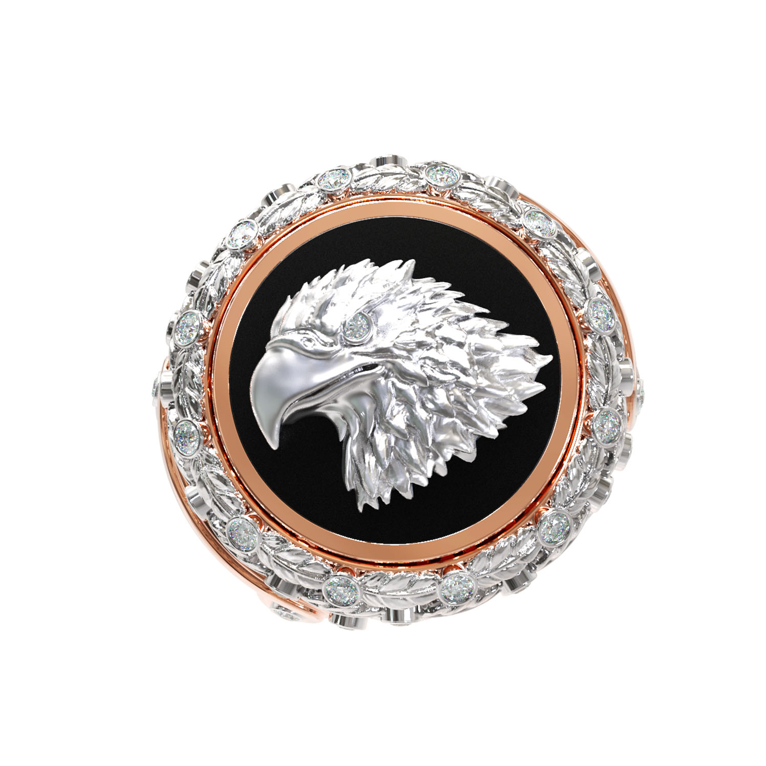 Кольцо из красного золота 585 пробы из коллекции De Luxe — Орлы — это выразительный аксессуар, объединяющий в себе строгость драгоценных металлов и глубину ювелирных камней. В центре композиции находится эффектная вставка из оникса чёрного цвета, на фоне которой выделяется детально проработанное изображение головы орла. Птицы в дизайне украшений часто символизируют свободу, силу и независимость, что делает это изделие мощным акцентом в образе.