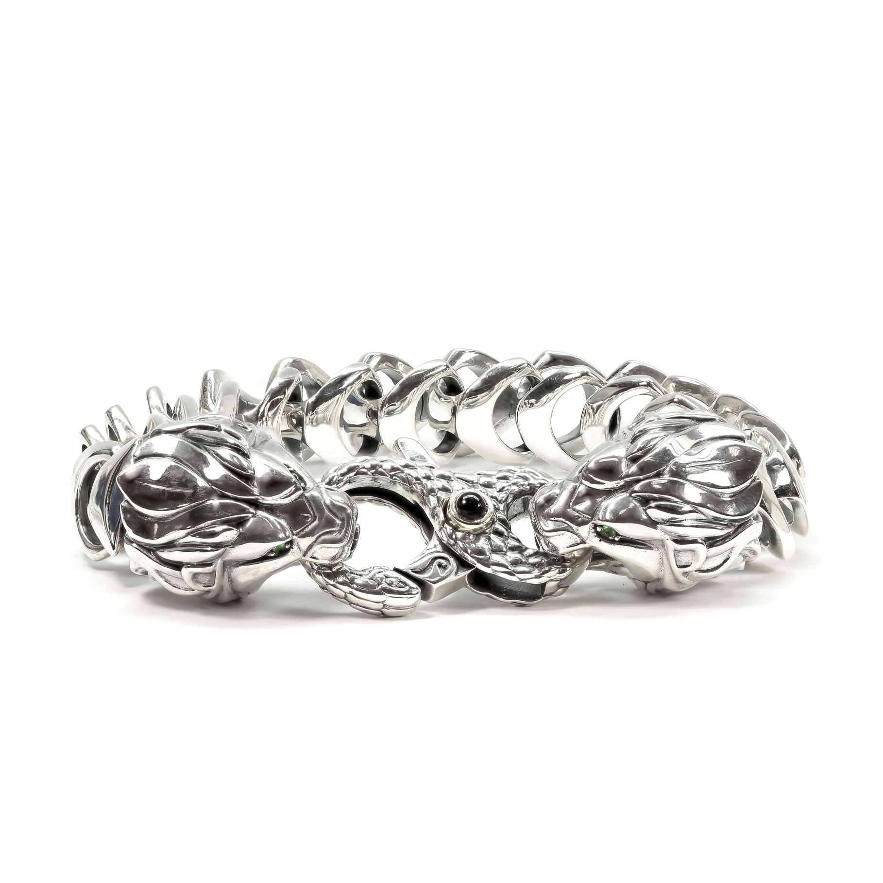 Браслет из серебра и золота c ониксом, изумрудом и рубином