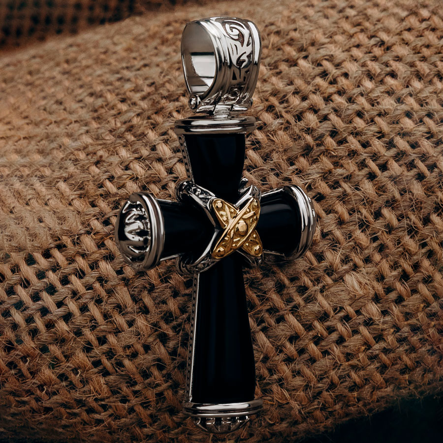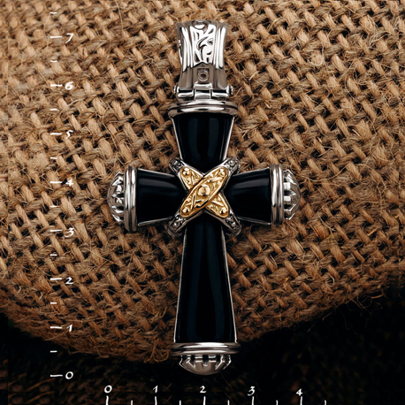 Крест из серебра и золота c ониксом и рубином