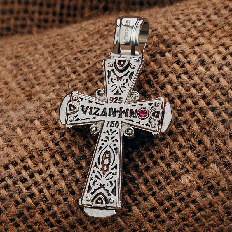 Крест из серебра и золота c ониксом и рубином