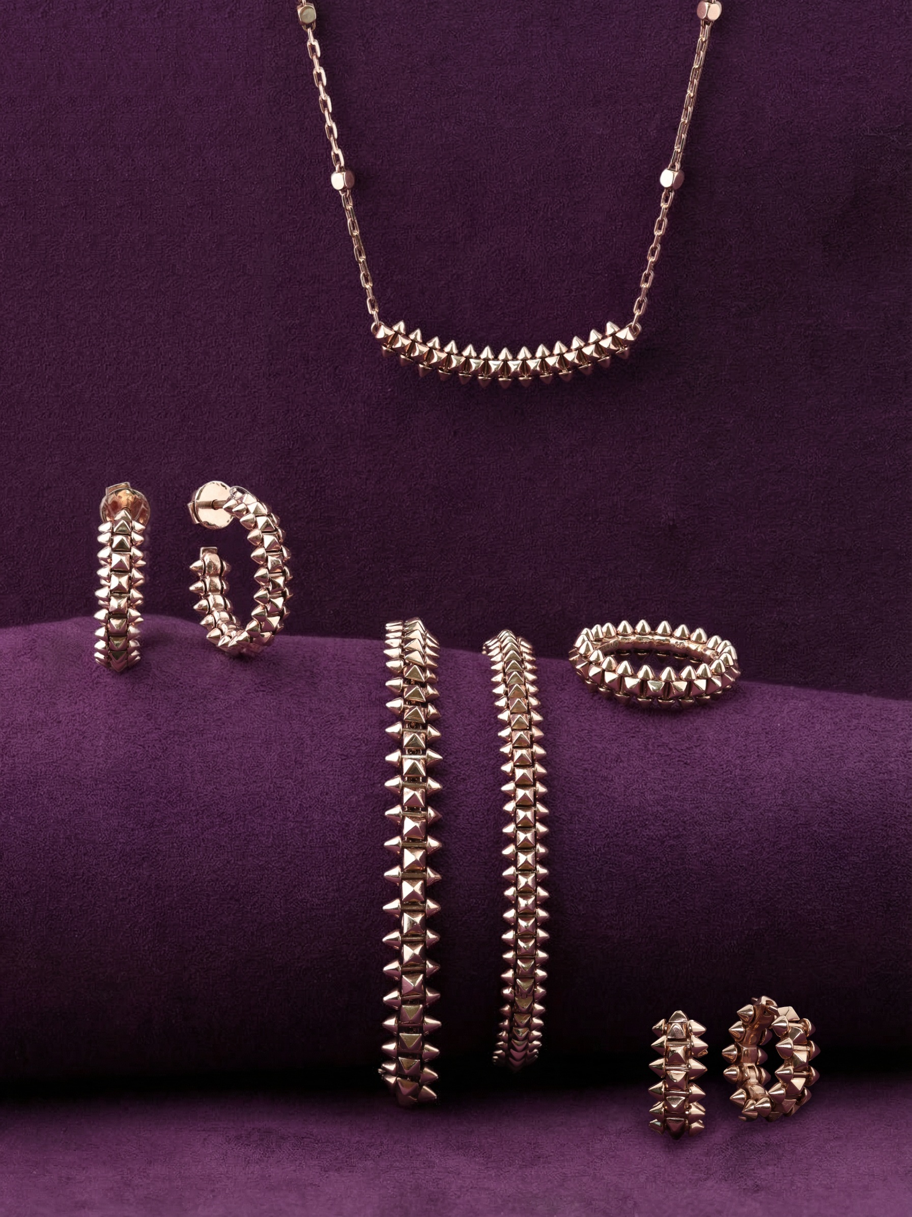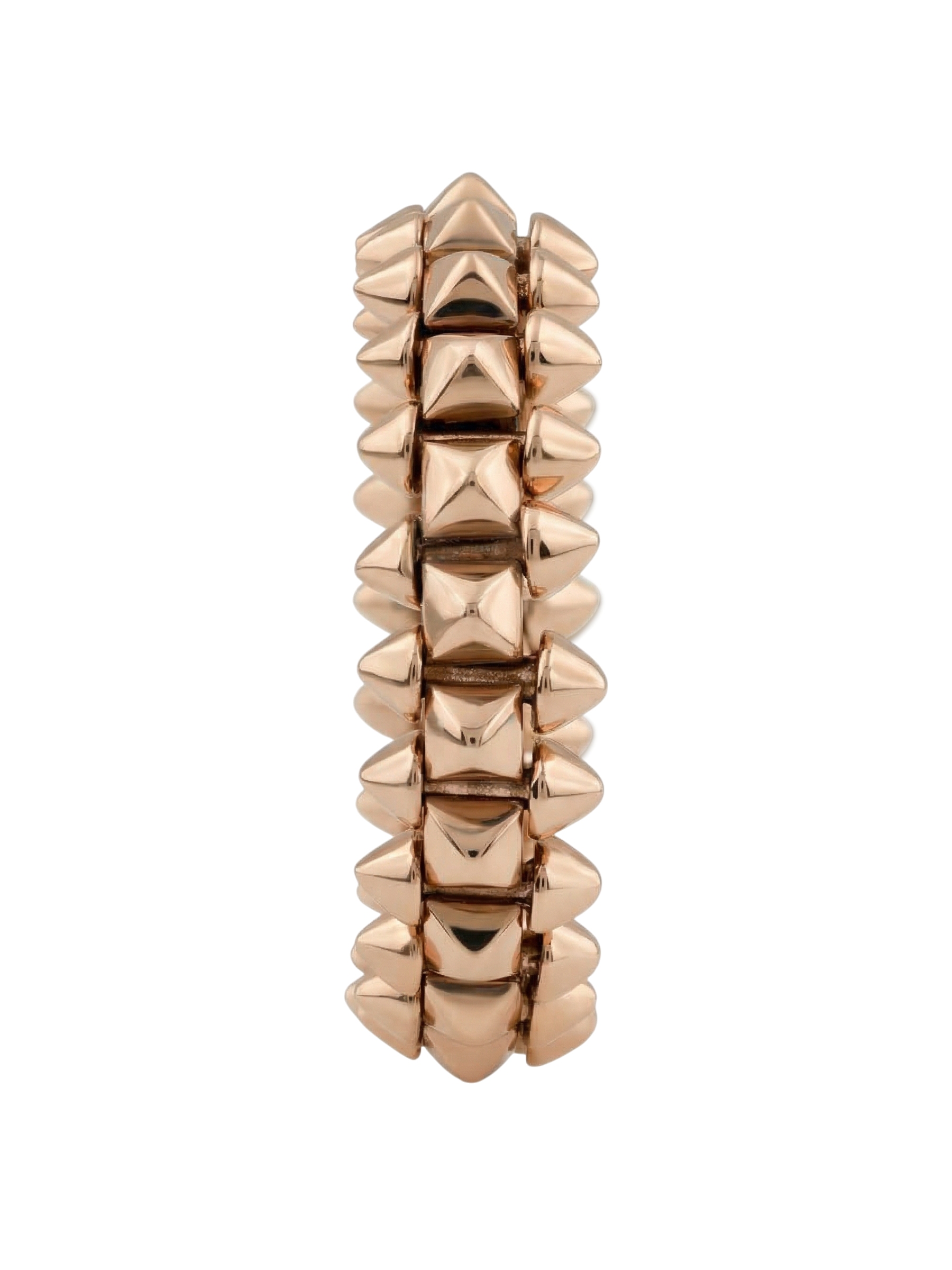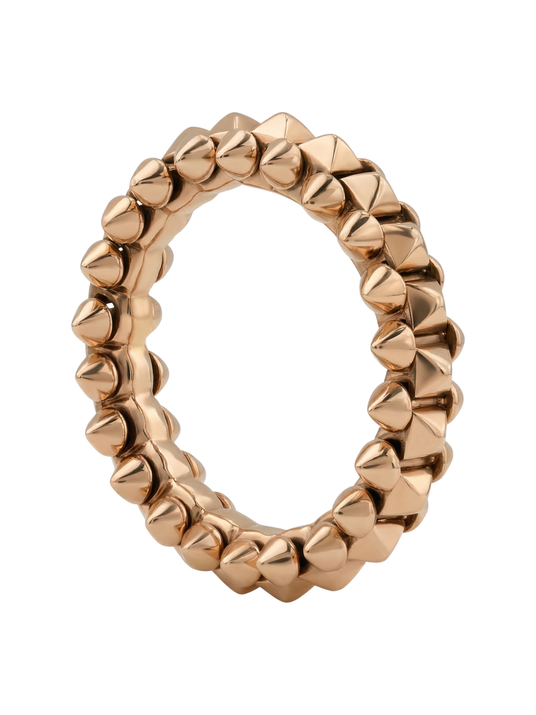 Украшение выполнено из качественного розового золота 585 пробы. Мягкий оттенок металла в сочетании с агрессивной геометрией шипов создает гармоничный контраст, который выглядит стильно и современно. Это унисекс-кольцо одинаково хорошо подходит как для женщин, так и для мужчин, позволяя создавать запоминающиеся аутфиты или использовать его как элемент парных украшений. Данная модель может стать частью изысканного комплекта, который дополнит вашу шкатулку.