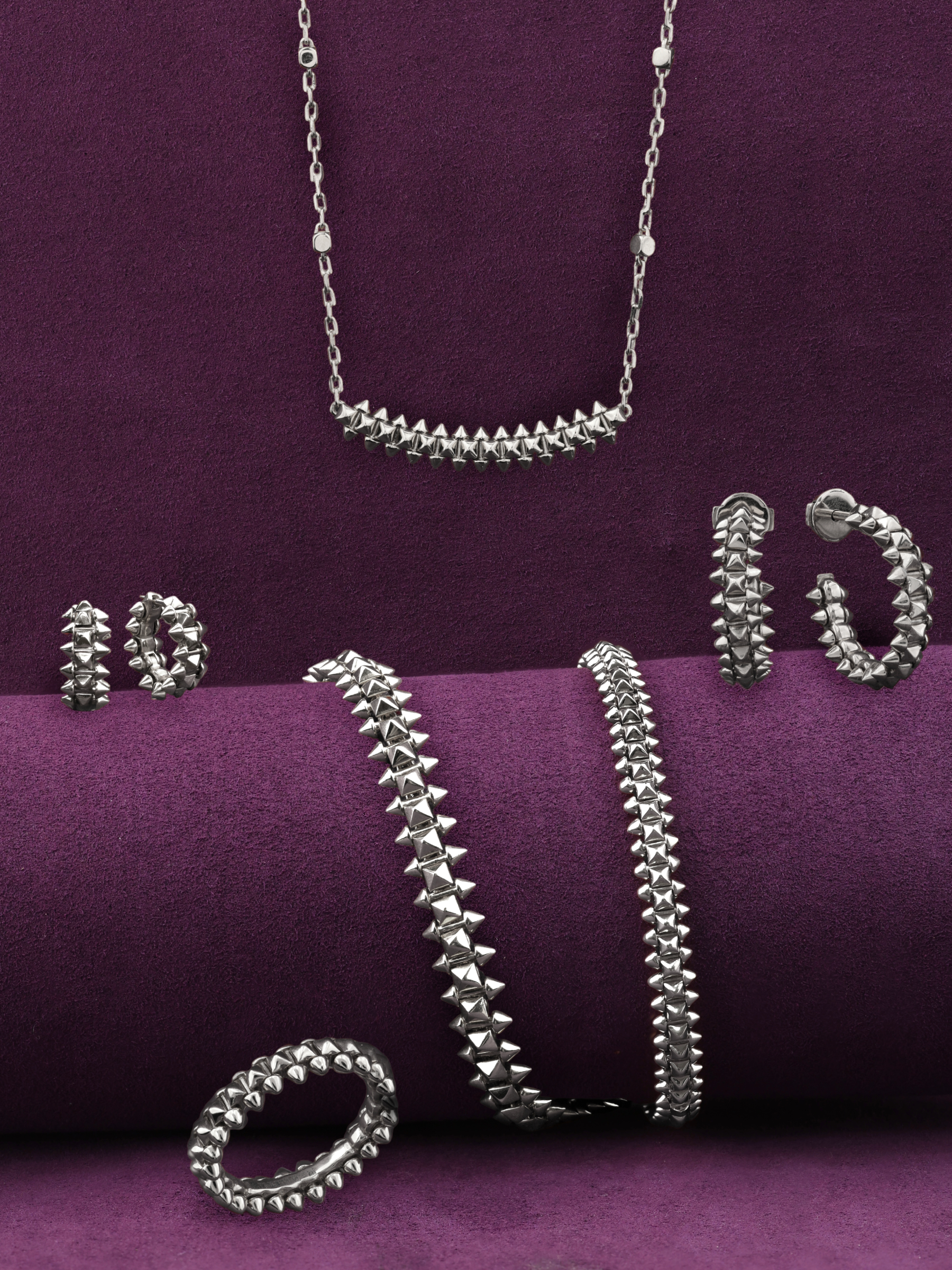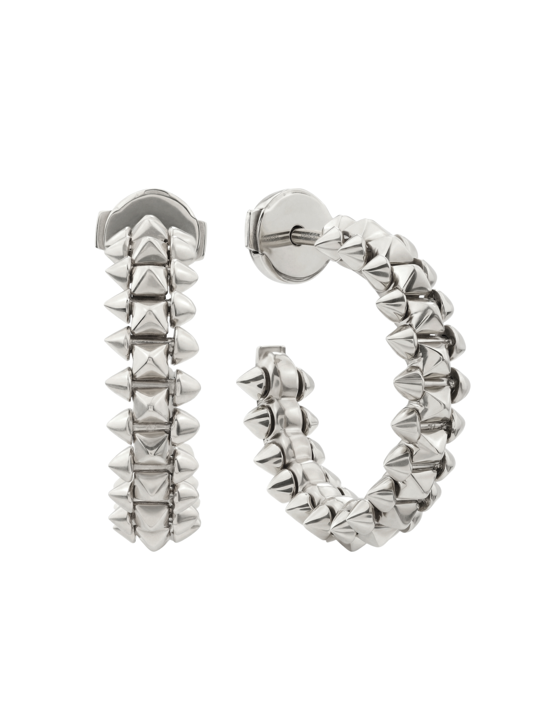 Серьги из белого золота из коллекции De Luxe — Дерзость представляют собой смелое прочтение классической ювелирной формы. Это украшение создано для тех, кто не боится подчеркнуть свою индивидуальность и предпочитает аксессуары с характером. Выразительный дизайн в виде множества шипов придает изделию динамику и дерзкое настроение, выделяя его среди традиционных моделей.