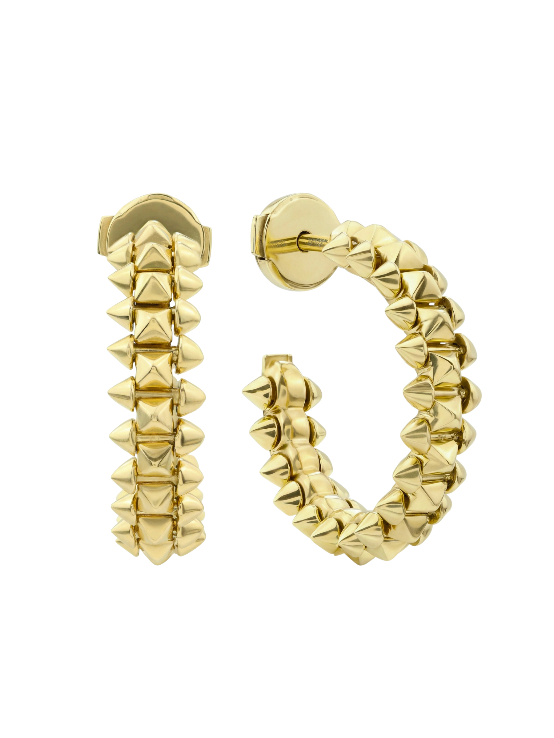 Серьги из лимонного золота 585 пробы из коллекции De Luxe — Дерзость созданы для тех, кто ценит смелый стиль и безупречное качество исполнения. Уникальный дизайн украшения привлекает внимание своей дерзостью и выразительностью: поверхность изделия полностью украшена фактурными шипами, которые эффектно играют на свету, создавая динамичный и современный образ. Лимонный оттенок золота придает аксессуару особое благородство и глубину, подчеркивая статусность владельца.