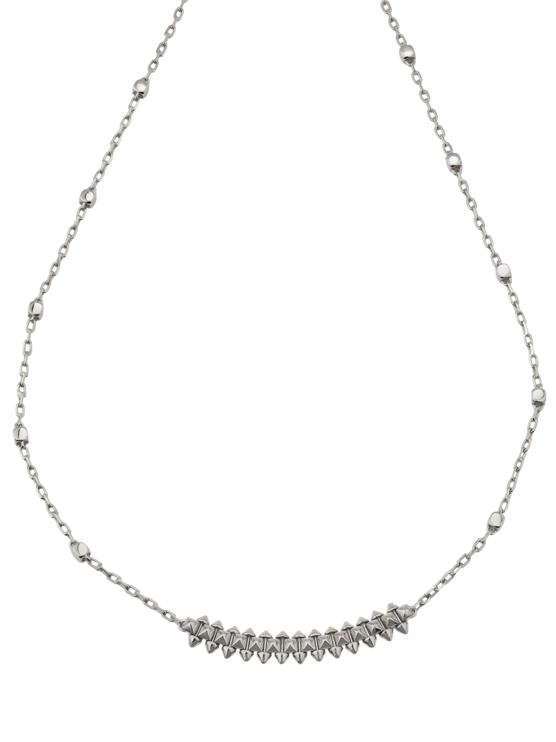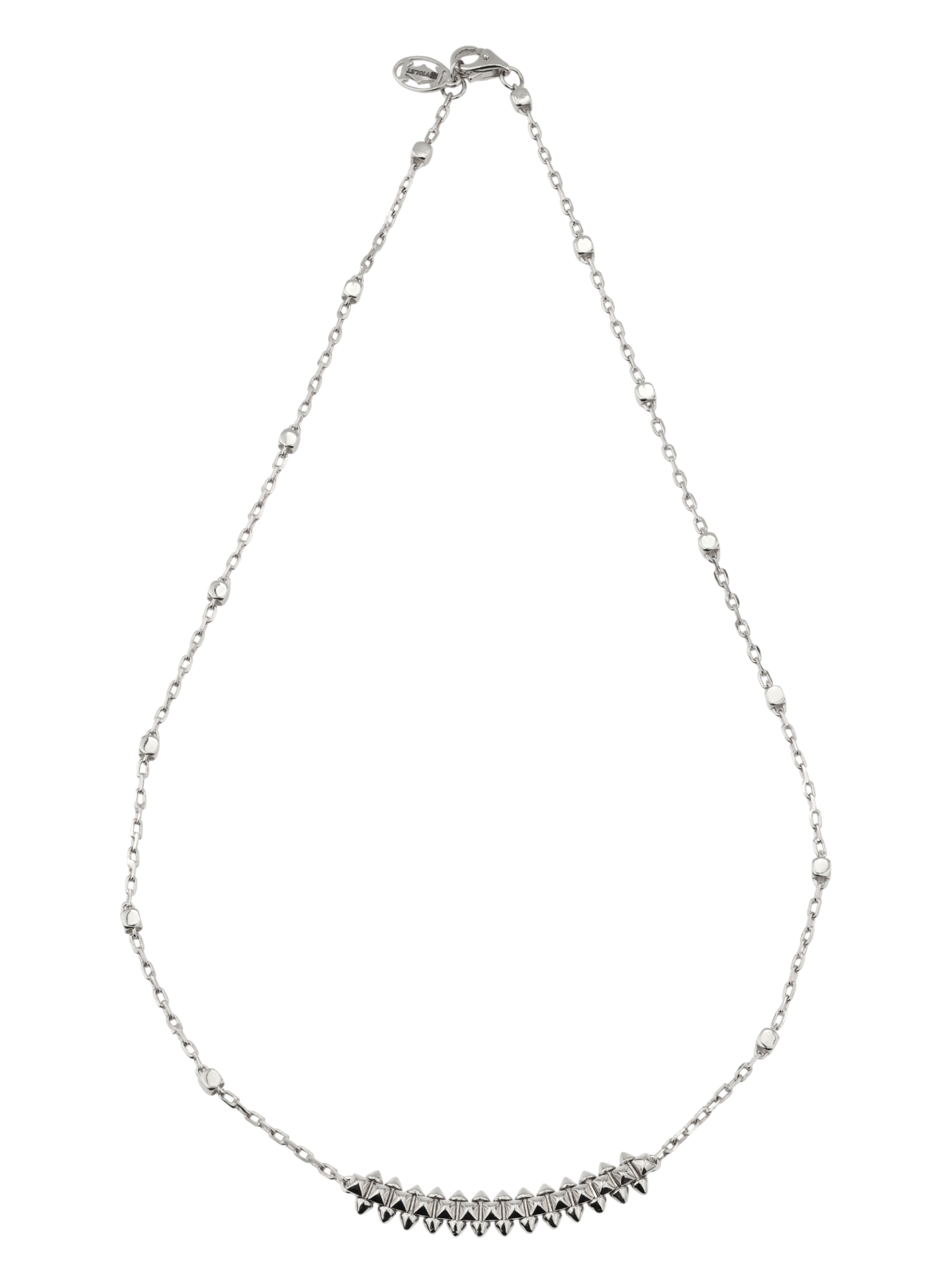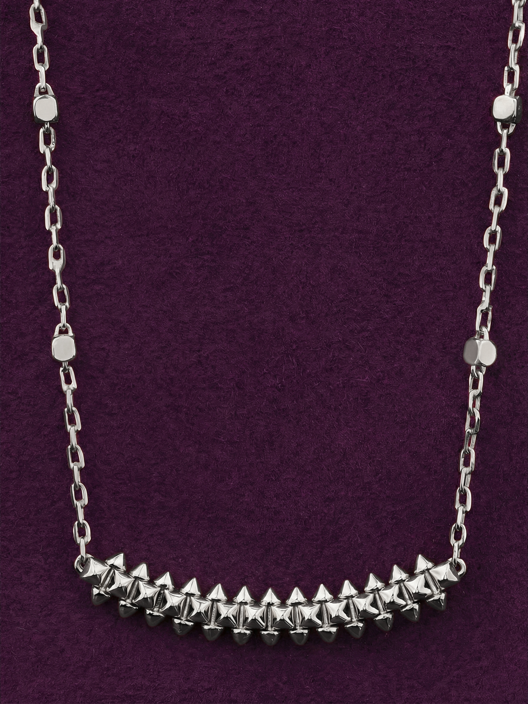 Эффектное колье из белого золота 585 пробы из коллекции De Luxe — Дерзость станет безупречным акцентом в вашем гардеробе. Украшение выполнено в выразительном дизайне с элементами в виде шипов, которые создают дерзкий и современный образ. Холодный блеск благородного металла подчеркивает статусность изделия и позволяет гармонично вписать его как в вечерний, так и в повседневный стиль.