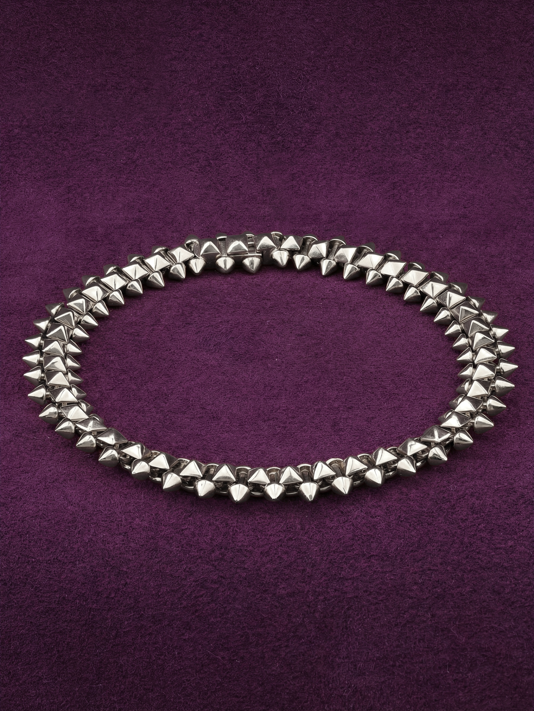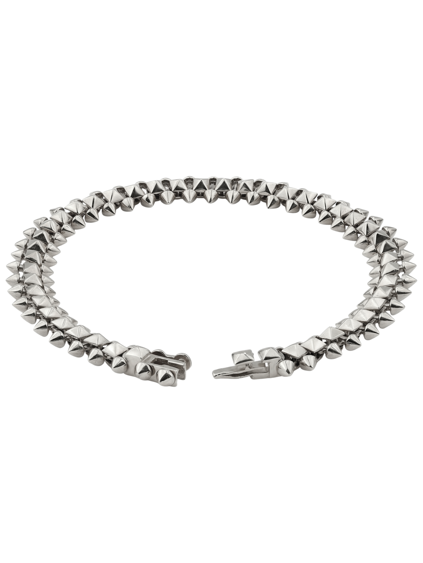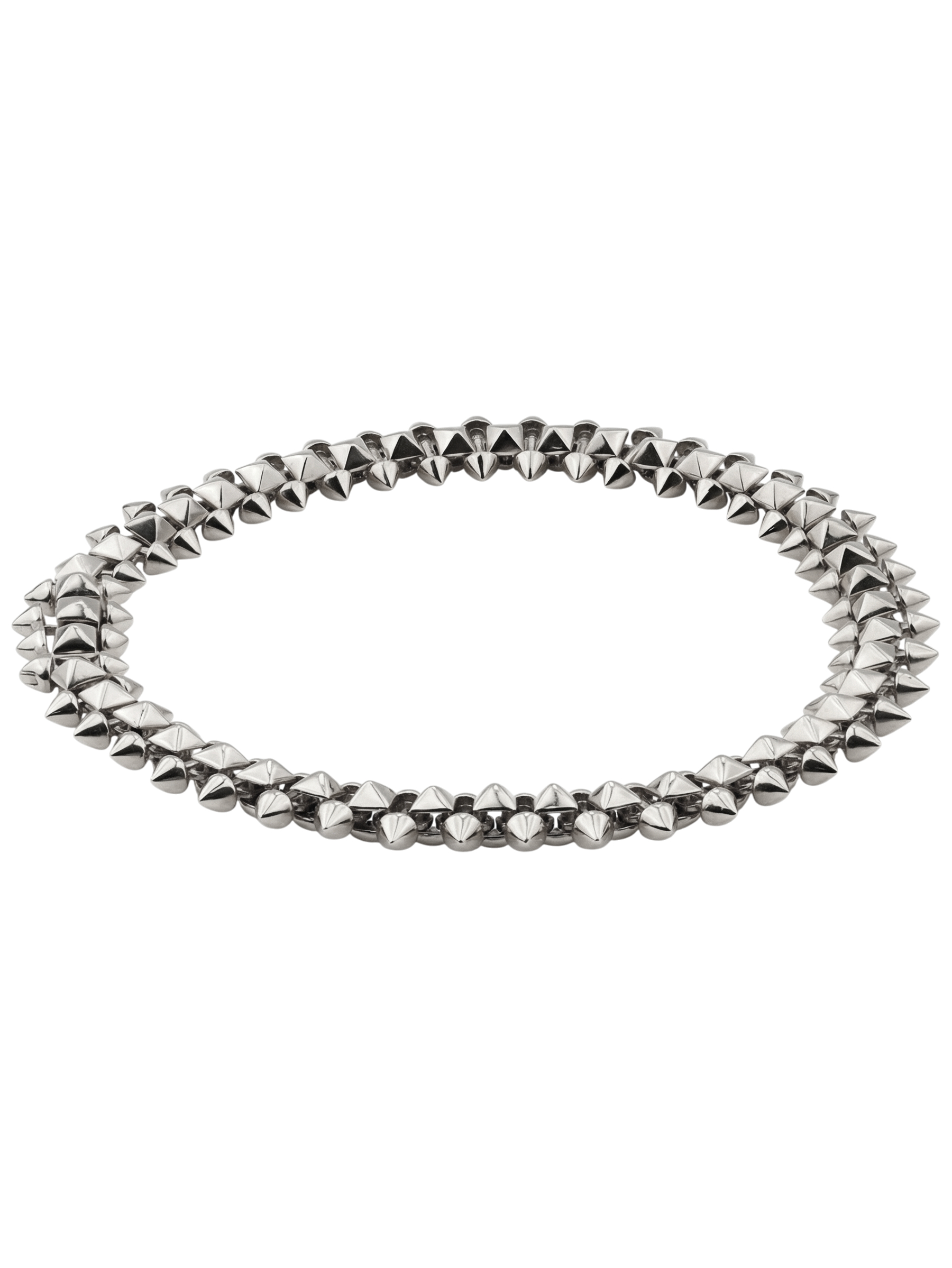 Эффектный браслет из белого золота 585 пробы из коллекции De Luxe — Дерзость — выбор тех, кто ценит смелый стиль и безупречное качество исполнения. Дизайн украшения, вдохновленный эстетикой дерзости, строится на выразительном декоре в виде шипов, который придает аксессуару современный и решительный характер. Благородный белый цвет металла подчеркивает четкие линии элементов, создавая стильный контраст и привлекая внимание к каждому движению.