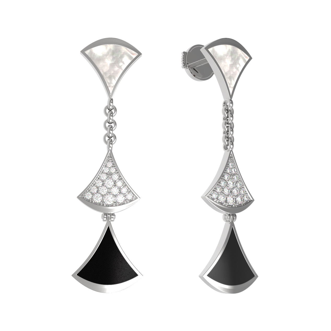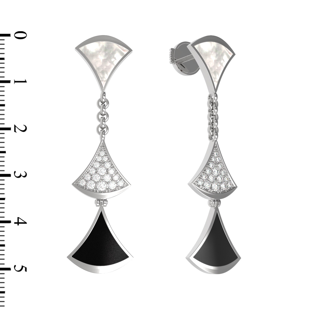 Серьги из белого золота c бриллиантами, ониксом и перламутром
