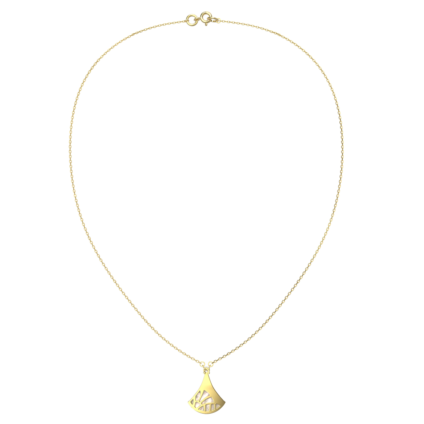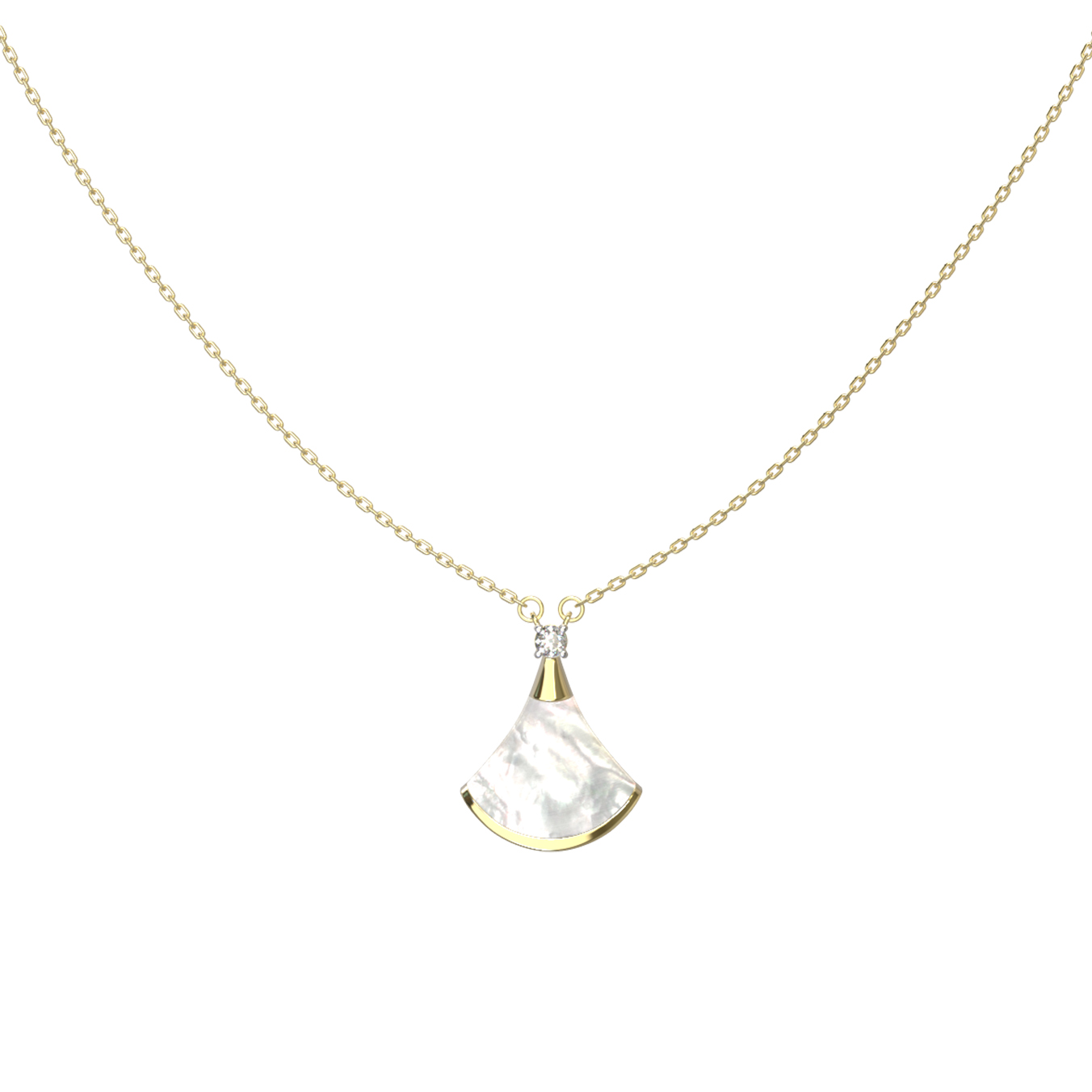 Элегантное колье из лимонного золота 585 пробы — воплощение утонченности и высокого ювелирного искусства. Центральным элементом украшения выступает изысканная подвеска в форме веера, дизайн которой вдохновлен эстетикой коллекции De Luxe — Веер. Нежный перелив перламутра, обладающего глубоким белым цветом, гармонично сочетается с теплым сиянием лимонного золота, создавая притягательный образ.