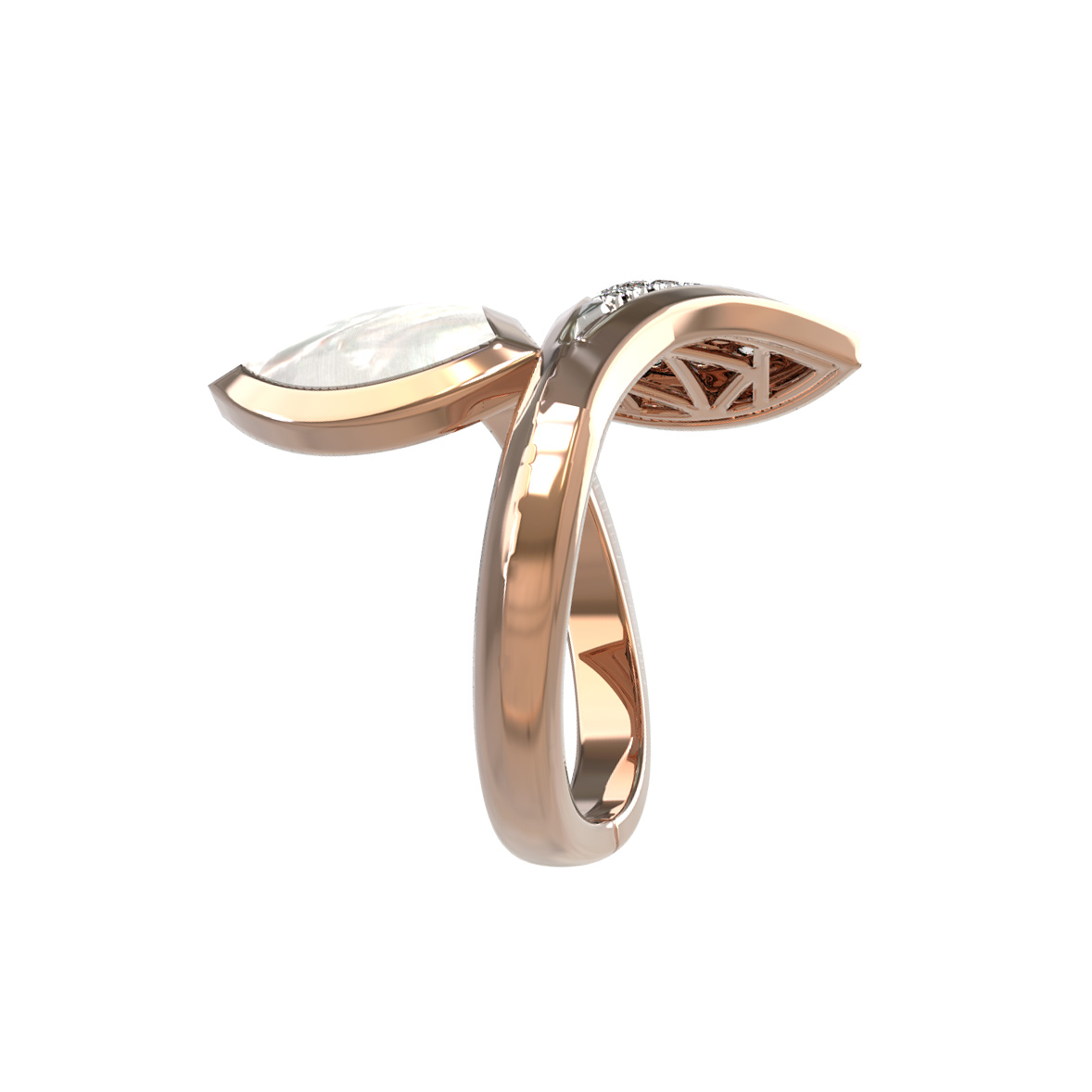Особую выразительность модели придает сочетание драгоценных вставок: сияющие белые бриллианты круглой формы соседствуют с нежным перламутром. Всего в украшении использована 21 вставка, создающая уникальную игру света на поверхности металла. Теплый оттенок красного золота идеально оттеняет блеск камней, придавая аксессуару благородный и завершенный вид.