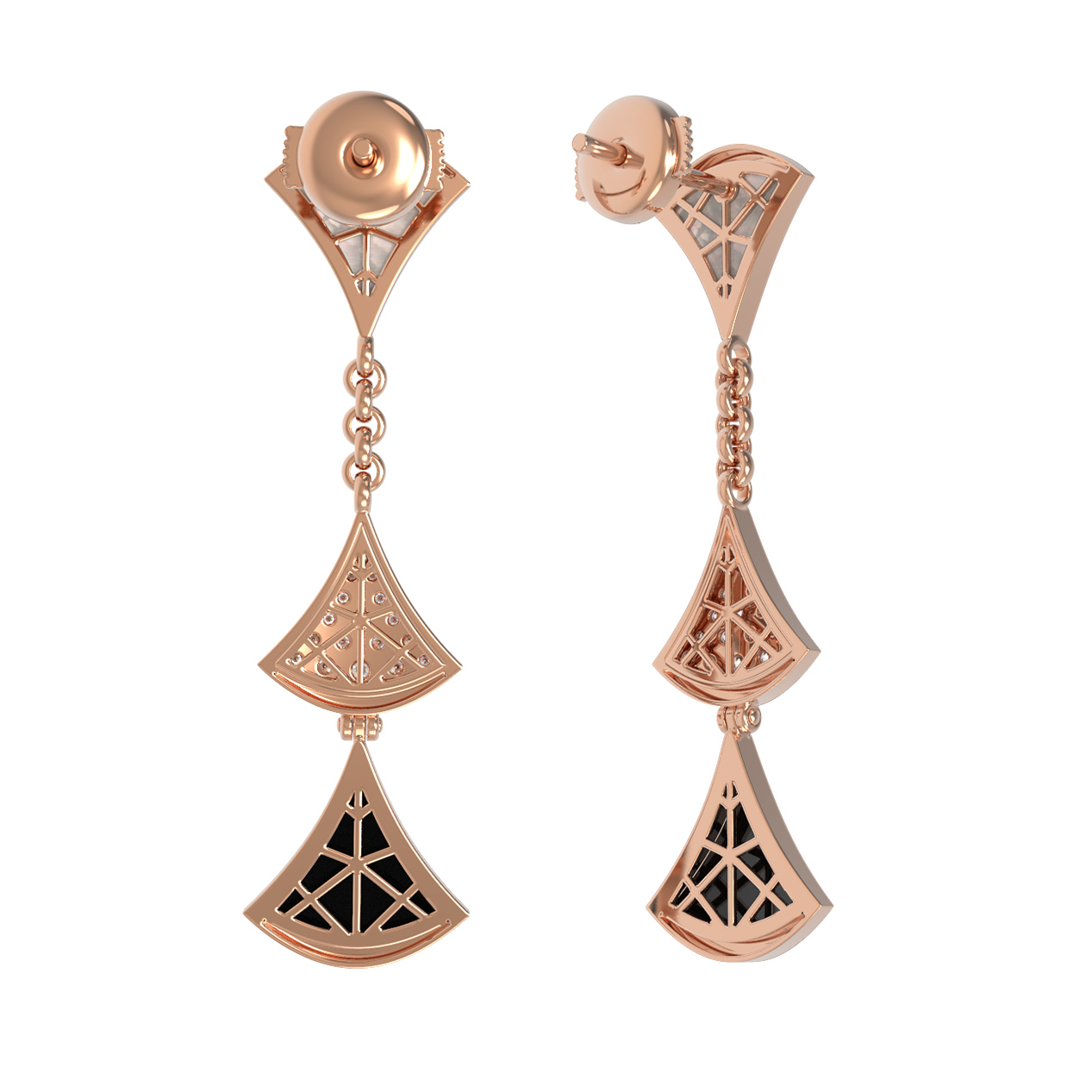Эффектные серьги из красного золота 585 пробы из коллекции De Luxe — Веер станут воплощением утонченного стиля и безупречного вкуса. Дизайн изделий, вдохновленный грациозной формой веера, объединяет в себе классическую роскошь и современные ювелирные тренды. Контрастное сочетание материалов создает неповторимую игру фактур и оттенков, привлекая восхищенные взгляды.