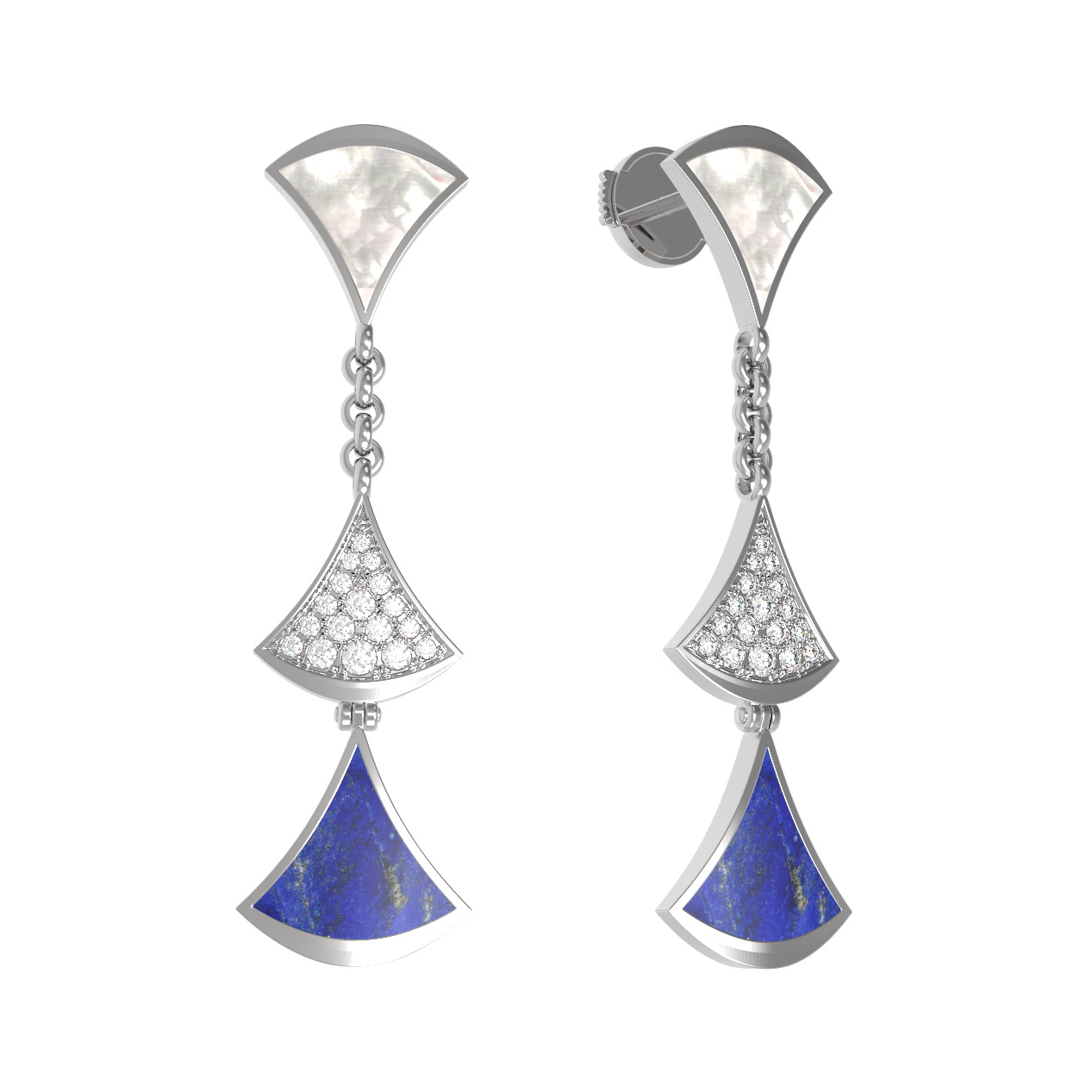 Серьги из белого золота c бриллиантами, лазуритом и перламутром