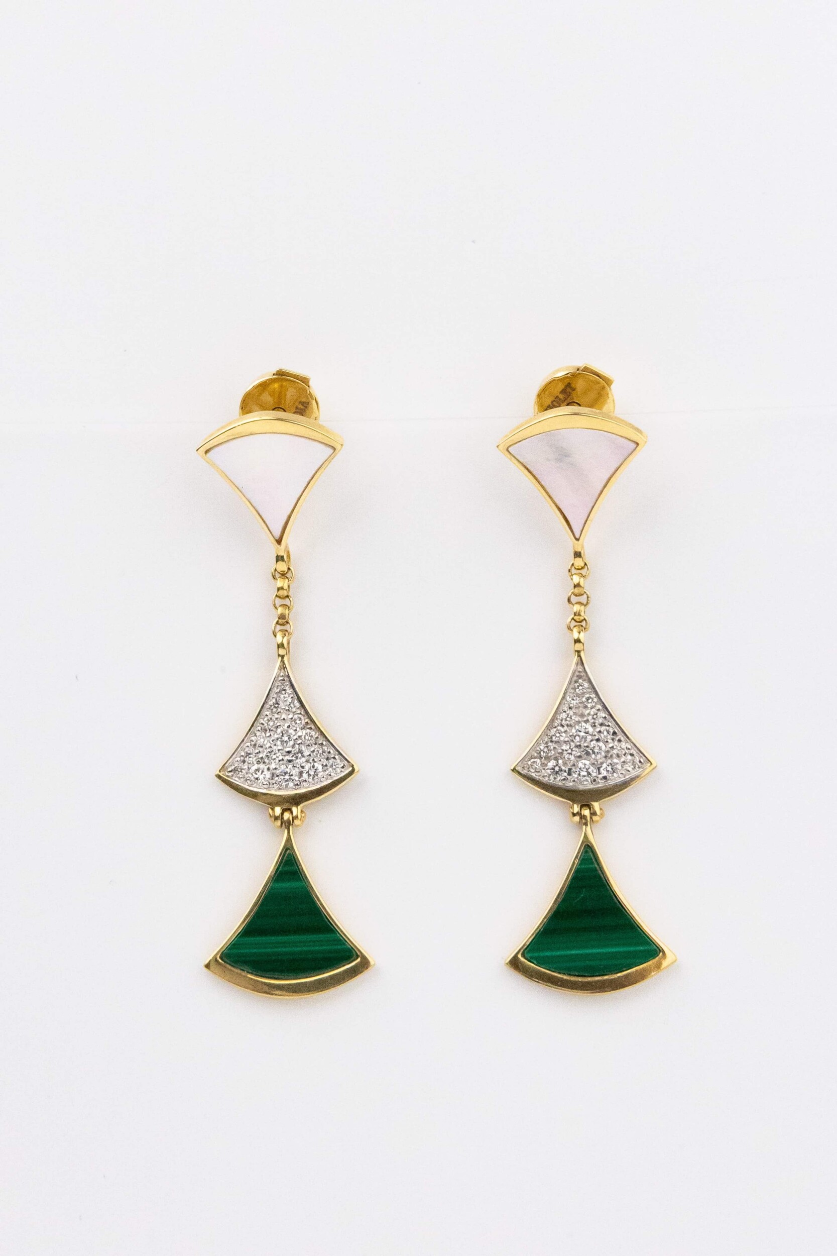 Серьги из лимонного золота c бриллиантами, малахитом и перламутром
