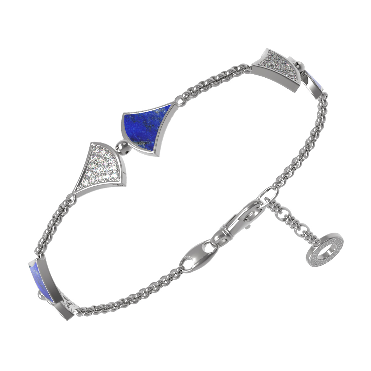 Браслет из белого золота c бриллиантами и лазуритом