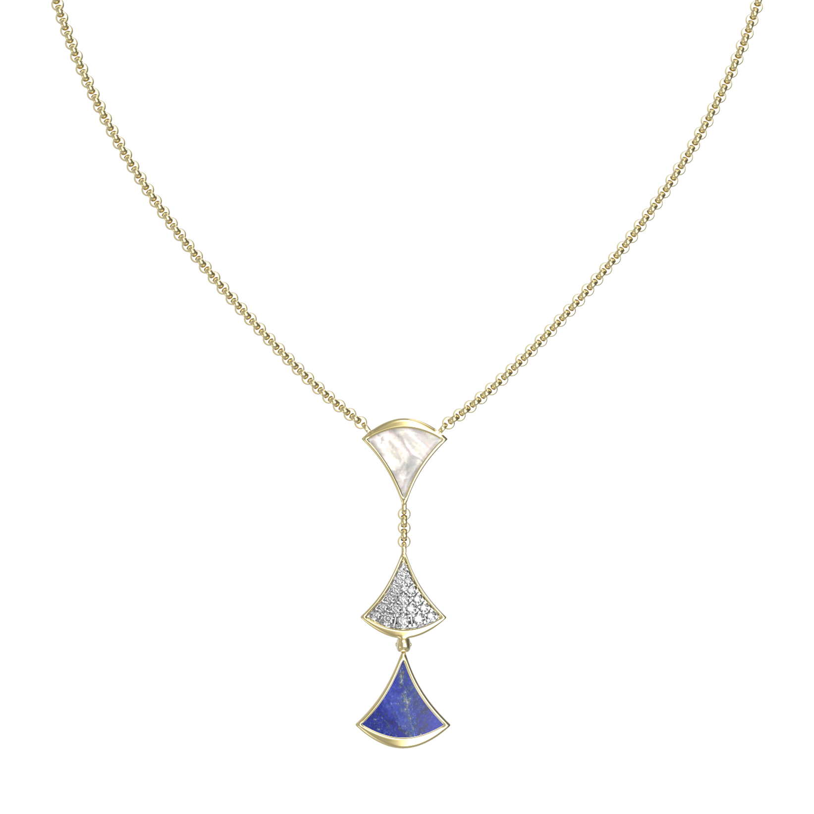 Колье из лимонного золота c бриллиантами, лазуритом и перламутром