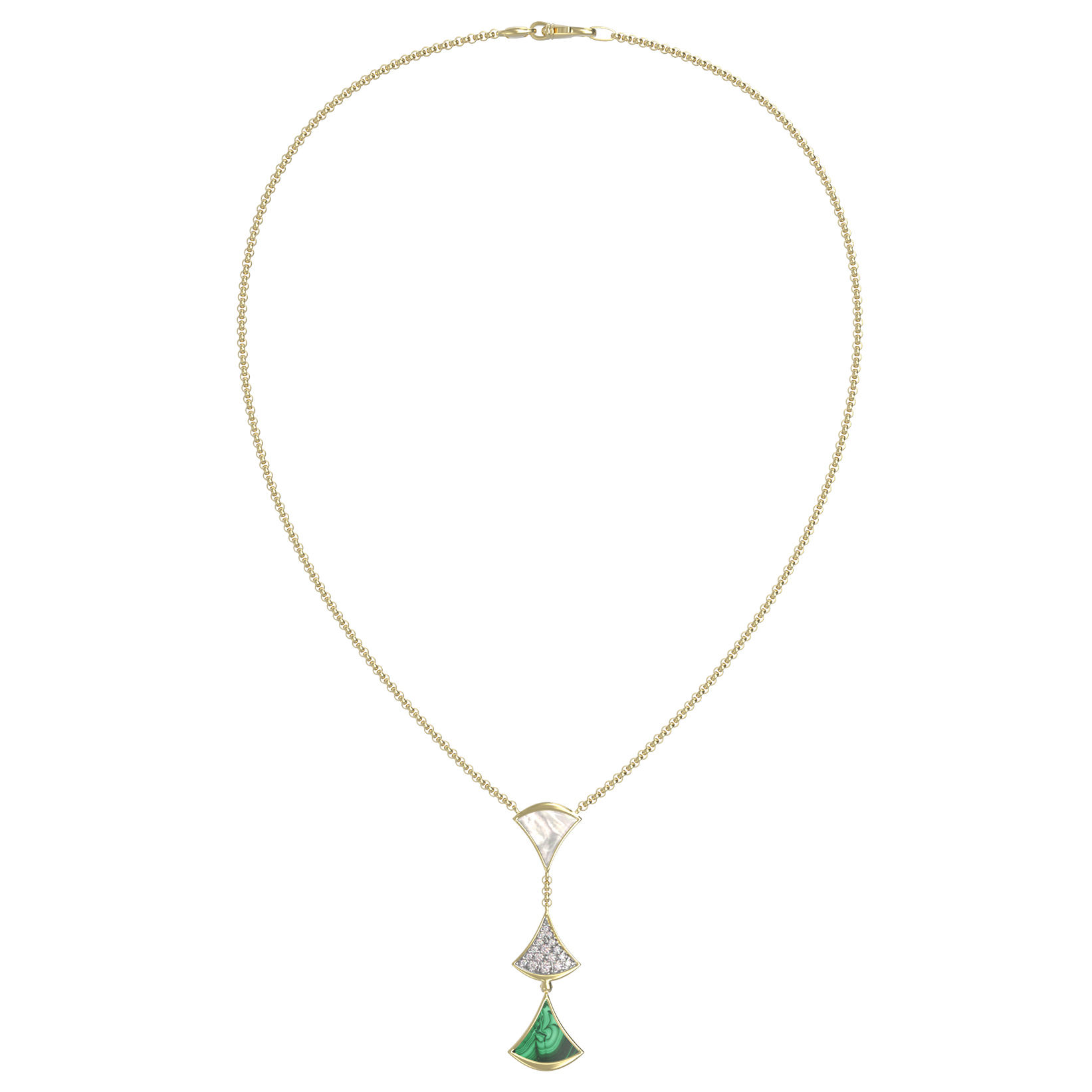 Колье из лимонного золота c бриллиантами, малахитом и перламутром