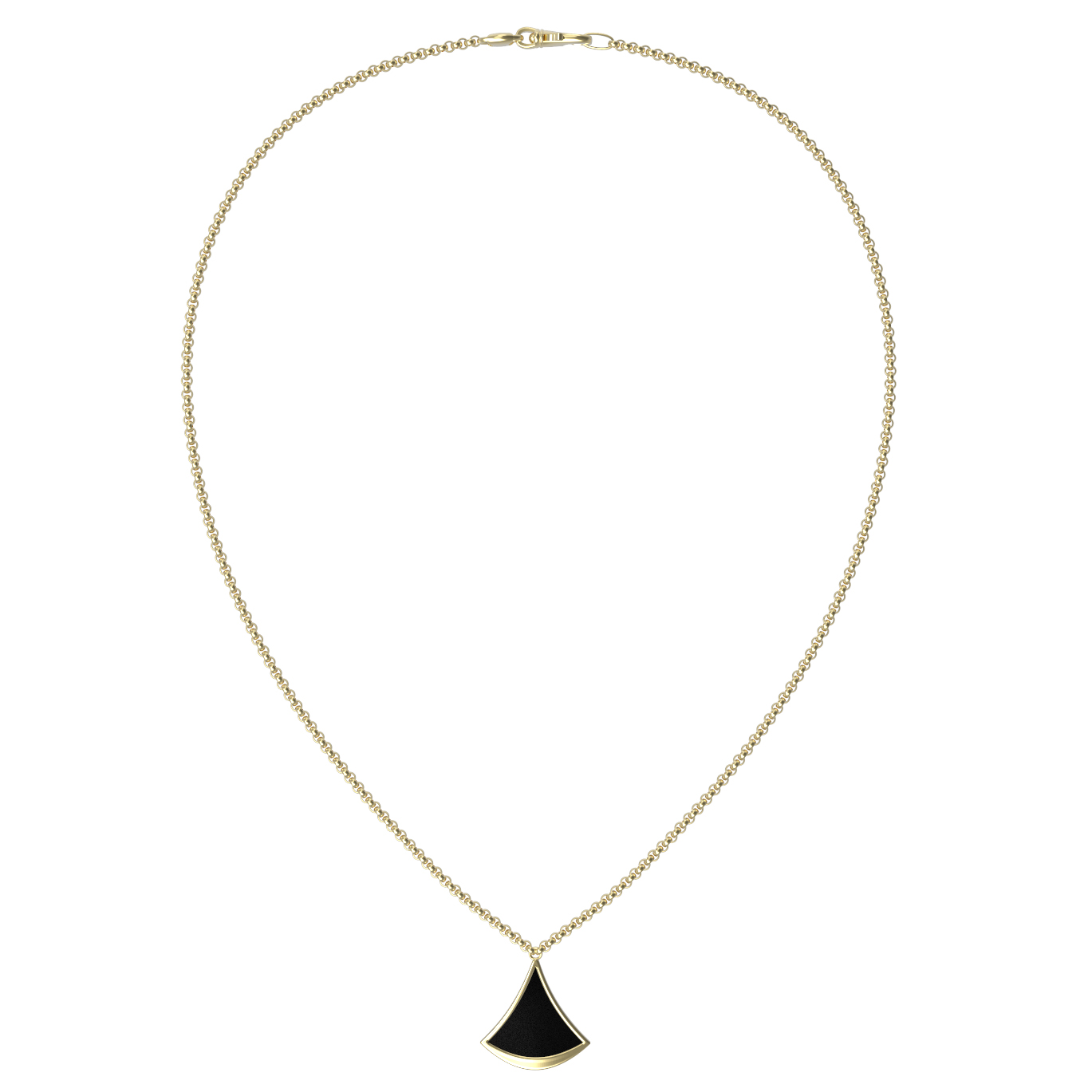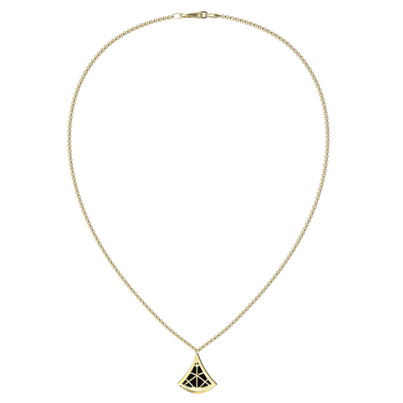 Элегантное колье из лимонного золота 585 пробы станет утонченным акцентом в вашем образе. Дизайн изделия вдохновлен формой веера, что придает украшению особую эстетику и выразительность. В центре композиции расположены две вставки из благородного черного оникса, чей глубокий цвет эффектно контрастирует с теплым сиянием лимонного золота. Это ювелирное украшение гармонично сочетает в себе классические традиции и современные дизайнерские решения.