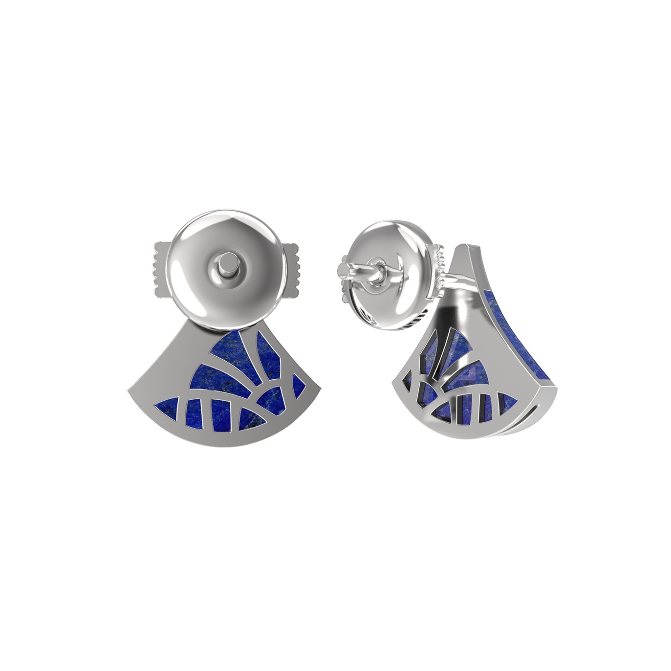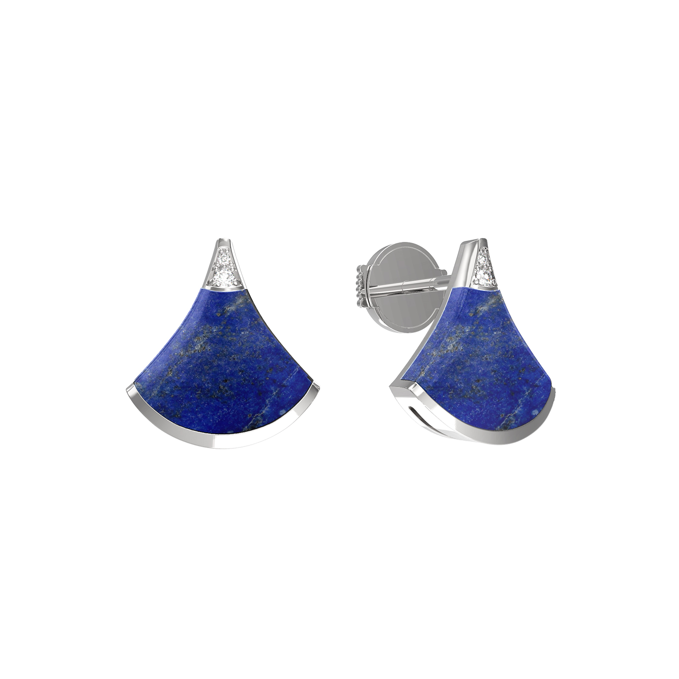 Изысканные серьги из белого золота 585 пробы из коллекции De Luxe — Веер станут воплощением утонченного стиля в вашем образе. Дизайн изделия выполнен в форме веера, что придает украшению особую геометрию и динамику. Глубокий синий цвет лазурита гармонично контрастирует с холодным блеском металла, создавая эффектный и выразительный тандем.