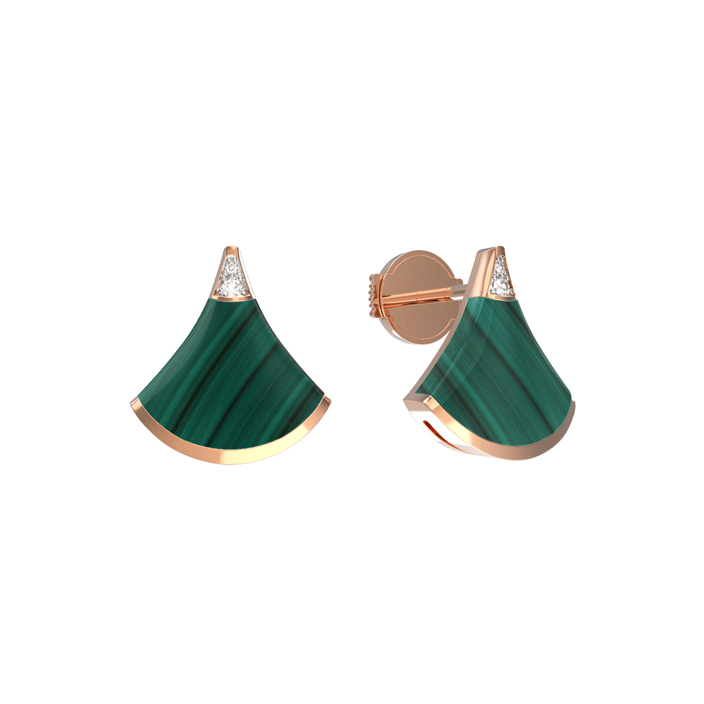 Элегантные серьги из коллекции De Luxe — Веер станут безупречным дополнением вашего образа, подчеркивая индивидуальность и безупречный вкус. Ювелирное изделие выполнено из красного золота 585 пробы, чей теплый оттенок гармонично сочетается с насыщенным зеленым цветом вставок из малахита. Дизайн в форме веера придает украшению особую утонченность и динамику, делая его выразительным акцентом для повседневного или вечернего стиля.