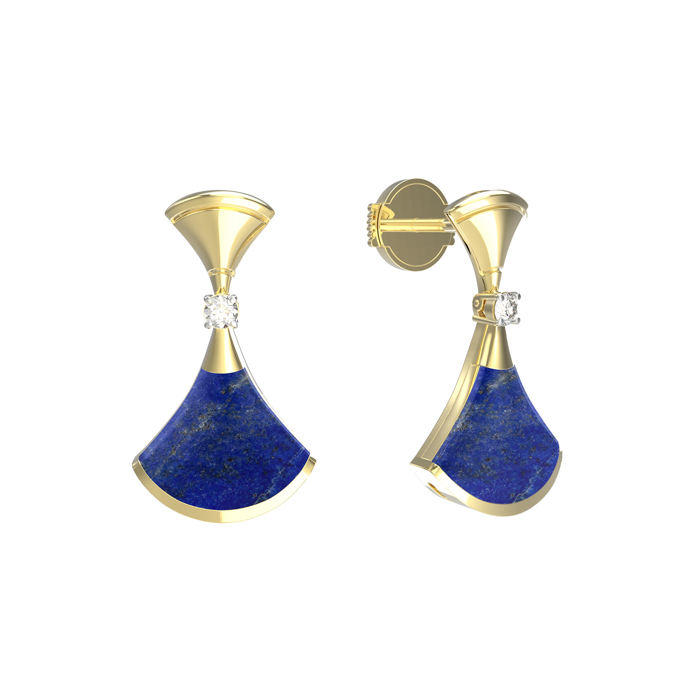 Серьги из лимонного золота c бриллиантами и лазуритом