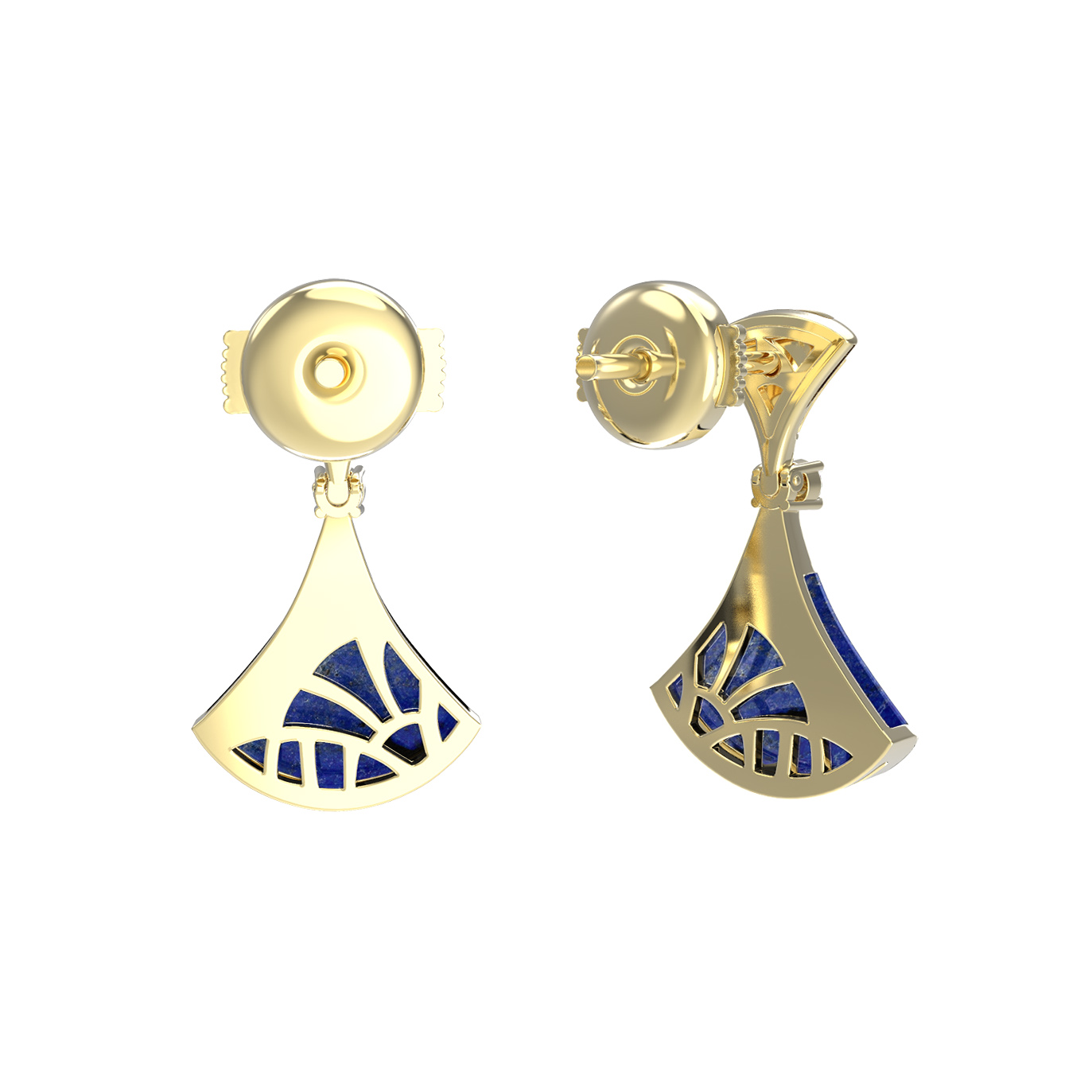 Центральным элементом композиции выступает насыщенный синий лазурит, чья глубокая текстура идеально контрастирует с теплым оттенком лимонного золота. Роскошное сочетание дополняют 4 бриллианта классической круглой формы — их чистый белый цвет добавляет изделию необходимого сияния и статусности. Качественная проработка каждой детали делает эти серьги настоящим произведением ювелирного искусства.