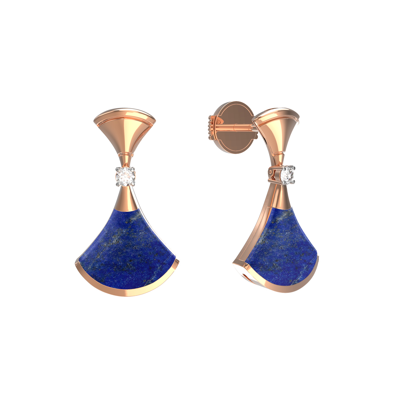 Серьги украшены 4 вставками круглой формы: сияющими бриллиантами белого цвета и глубокими по тону лазуритами. Такое сочетание материалов подчеркивает благородство изделия и высокий статус его обладателя. Лаконичная, но узнаваемая геометрия делает эти серьги универсальным выбором для ценителей эстетики: они идеально подойдут как женщинам, так и мужчинам, предпочитающим эксклюзивные ювелирные решения. Надежная фиксация и продуманная форма обеспечивают комфорт при ношении.