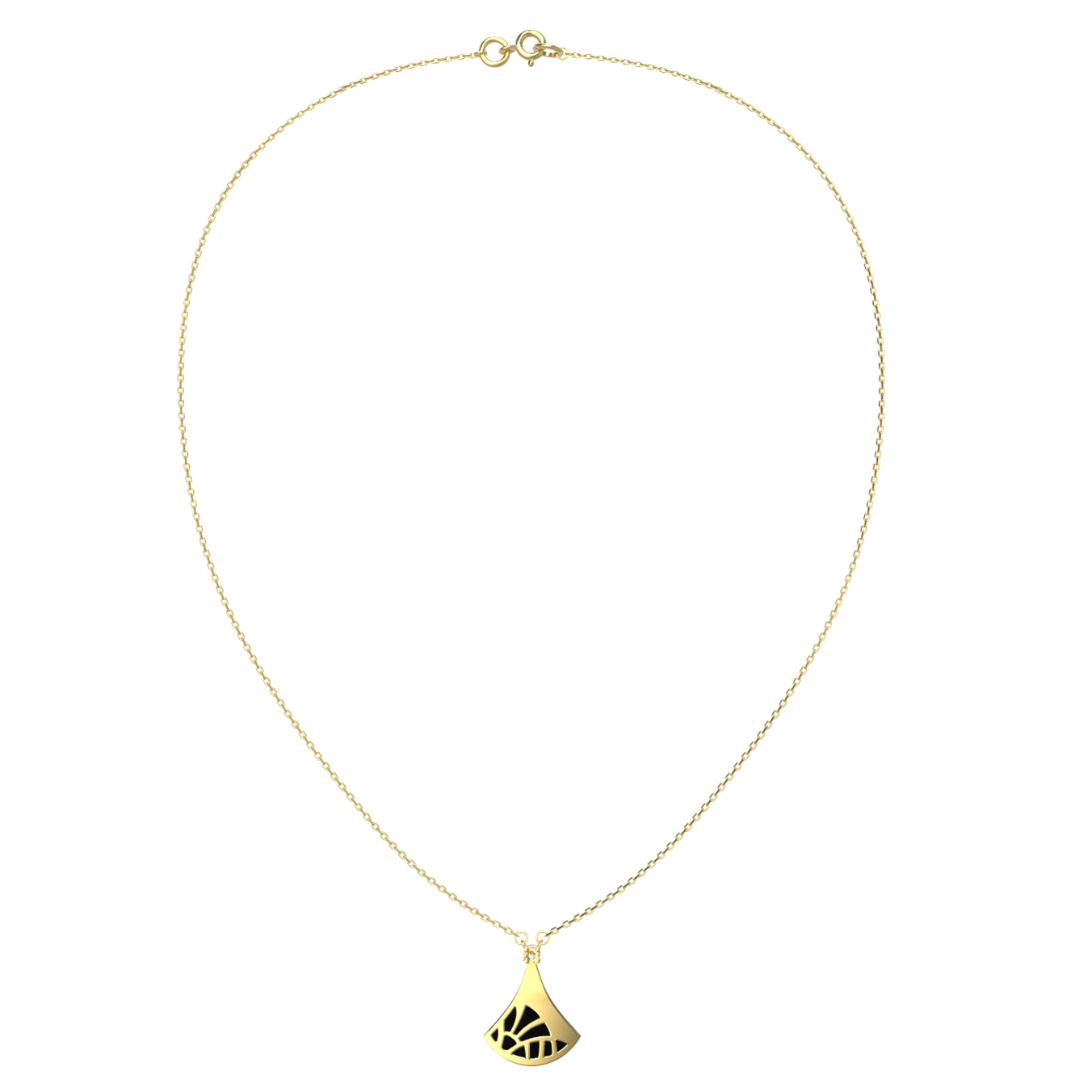 Элегантное колье из лимонного золота 585 пробы из серии De Luxe — Веер станет идеальным завершением вашего образа. Дизайнерское решение в форме веера придает украшению особую утонченность и узнаваемый шарм. Благородный блеск лимонного золота гармонично подчеркивается контрастным сочетанием вставок: глубокого черного оникса и сверкающего белого бриллианта круглой огранки. В изделии используется 6 вставок, которые создают сбалансированную композицию, приковывающую взгляд.
