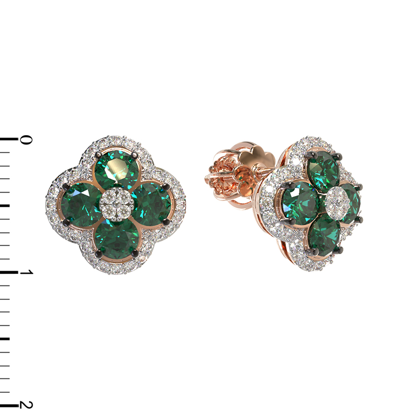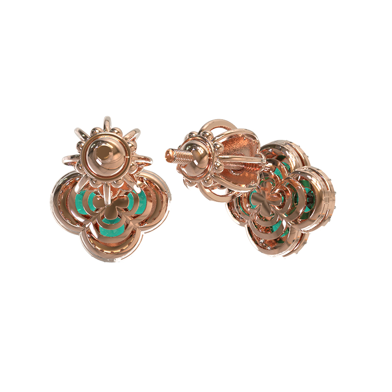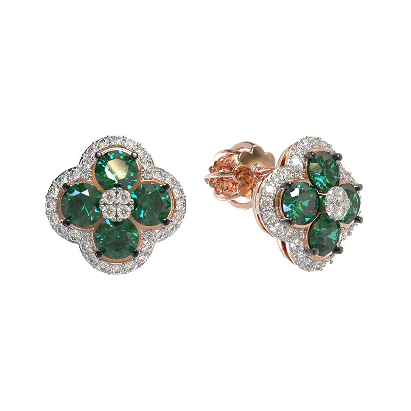 Центральную композицию украшают насыщенные изумруды глубокого зелёного цвета, ограненные в безупречную форму круга. Их яркий, природный оттенок эффектно контрастирует с ослепительным сиянием белых бриллиантов, которые обрамляют каждый элемент декора. Всего в изделии использовано 72 вставки круглой формы, что создает роскошную игру света при каждом вашем движении. Ювелирная композиция в форме цветка выглядит женственно и утонченно.
