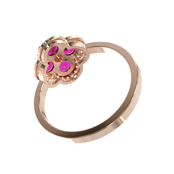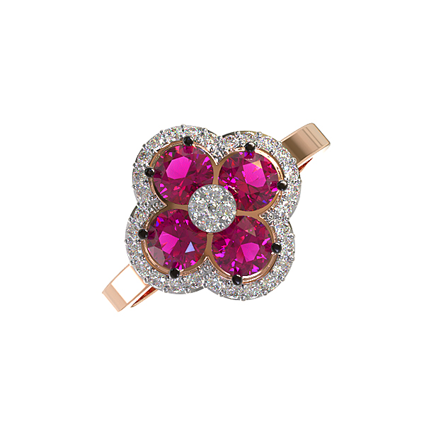 Роскошное кольцо из красного золота 585 пробы из коллекции De Luxe Бриллианты — Fiore станет безупречным акцентом вашего образа. Дизайн украшения воплощает элегантность и утонченный стиль, подчеркивая статус и безупречный вкус владельца. Ювелирное изделие выполнено в форме изящного цветка, лепестки которого инкрустированы насыщенными красными рубинами круглой огранки. Весь ансамбль дополнен сияющими белыми бриллиантами, которые создают неповторимую игру света при каждом движении.