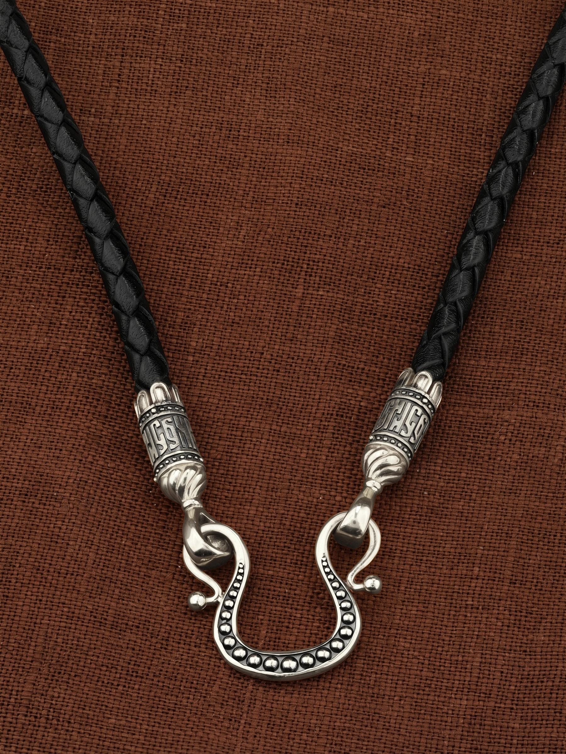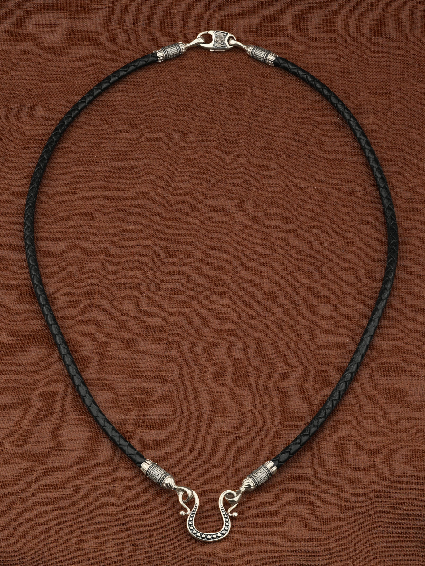 Гайтан из белого золота c кожаным шнурком