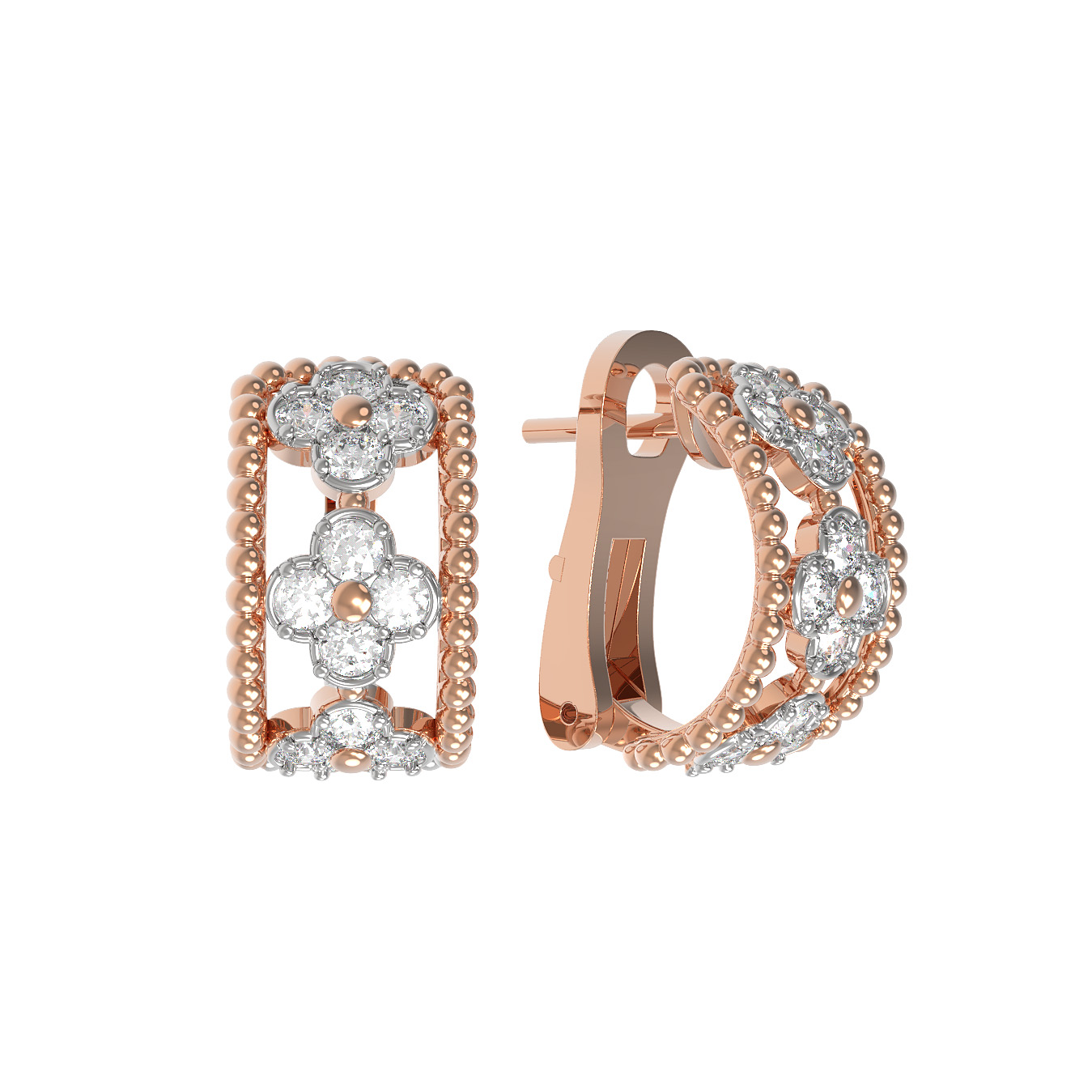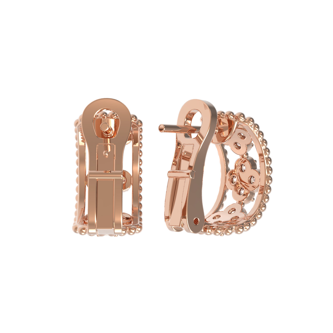Центральным элементом декора выступают 24 бриллианта классической круглой формы с чистым белым цветом вставок. Камни искусно закреплены, создавая невероятную игру света при каждом движении. Сочетание красного золота и сияния драгоценных камней делает эти серьги универсальным аксессуаром, подходящим как для женщин, так и для мужчин, которые ценят статус и лаконичную роскошь в ювелирных украшениях.