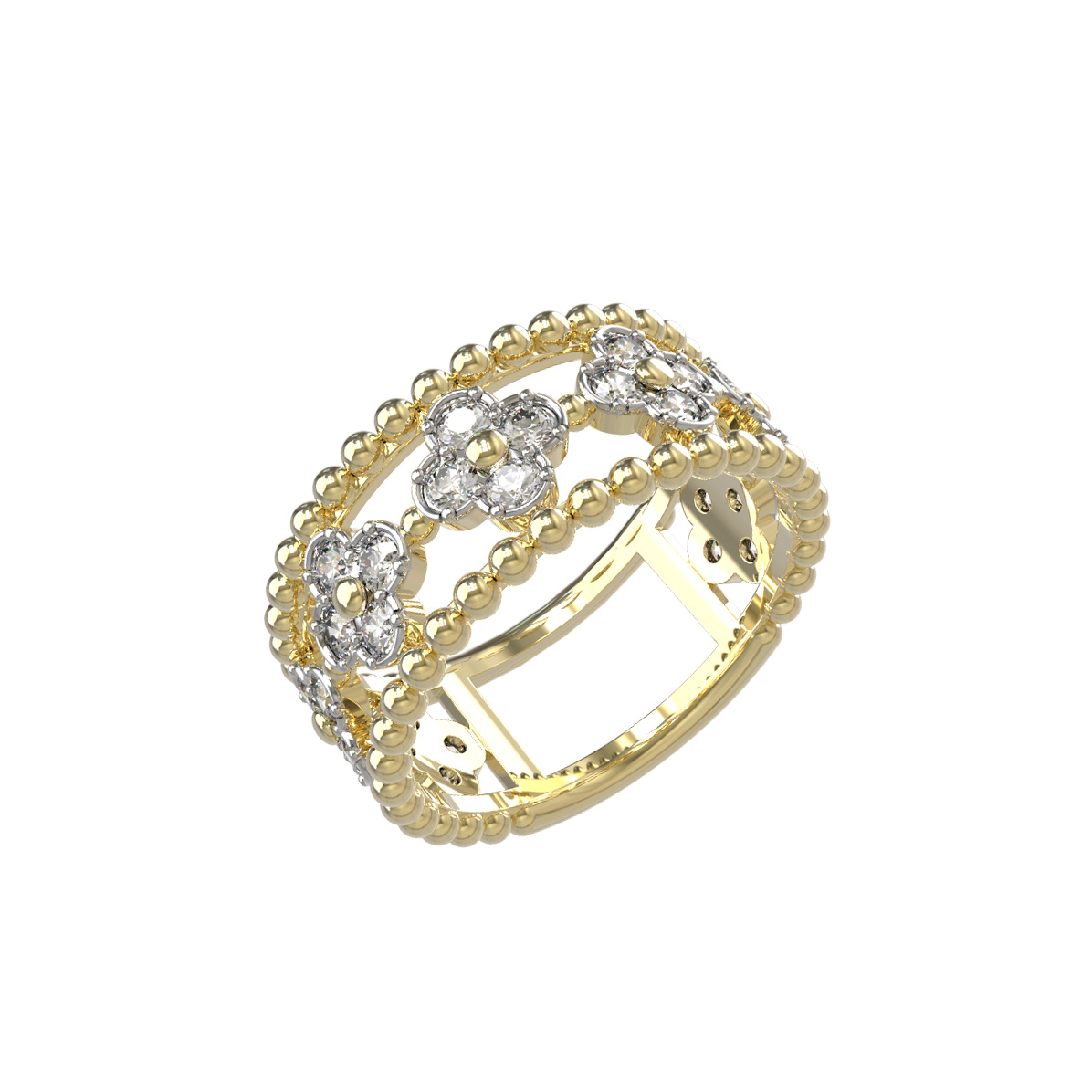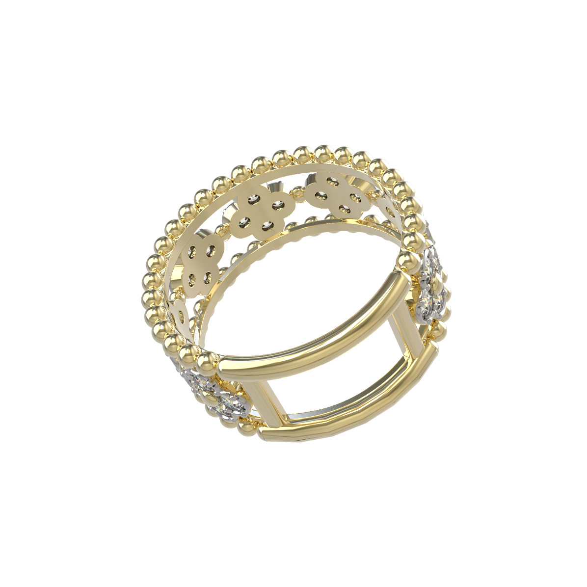 В центре композиции расположены 28 бриллиантов круглой огранки с чистым белым цветом вставок, которые эффектно контрастируют с теплым оттенком лимонного золота, создавая выразительную игру света. Благодаря своему универсальному и стильному исполнению, кольцо одинаково гармонично смотрится как на женской, так и на мужской руке, становясь акцентным аксессуаром для любого случая.