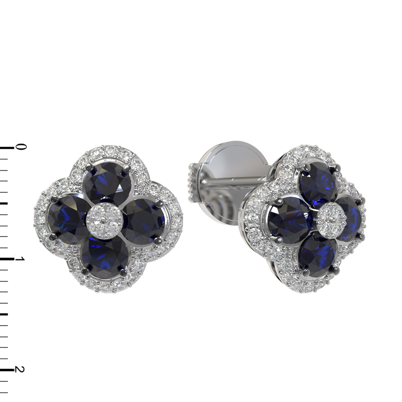 Центральным элементом дизайна стала изысканная композиция в форме цветка, украшенная 72 вставками круглой огранки. Глубокий, насыщенный синий цвет сапфиров притягивает взгляд, создавая контрастный акцент, в то время как искрящиеся белые бриллианты окружают их изящным сиянием, добавляя изделию яркости и выразительности.