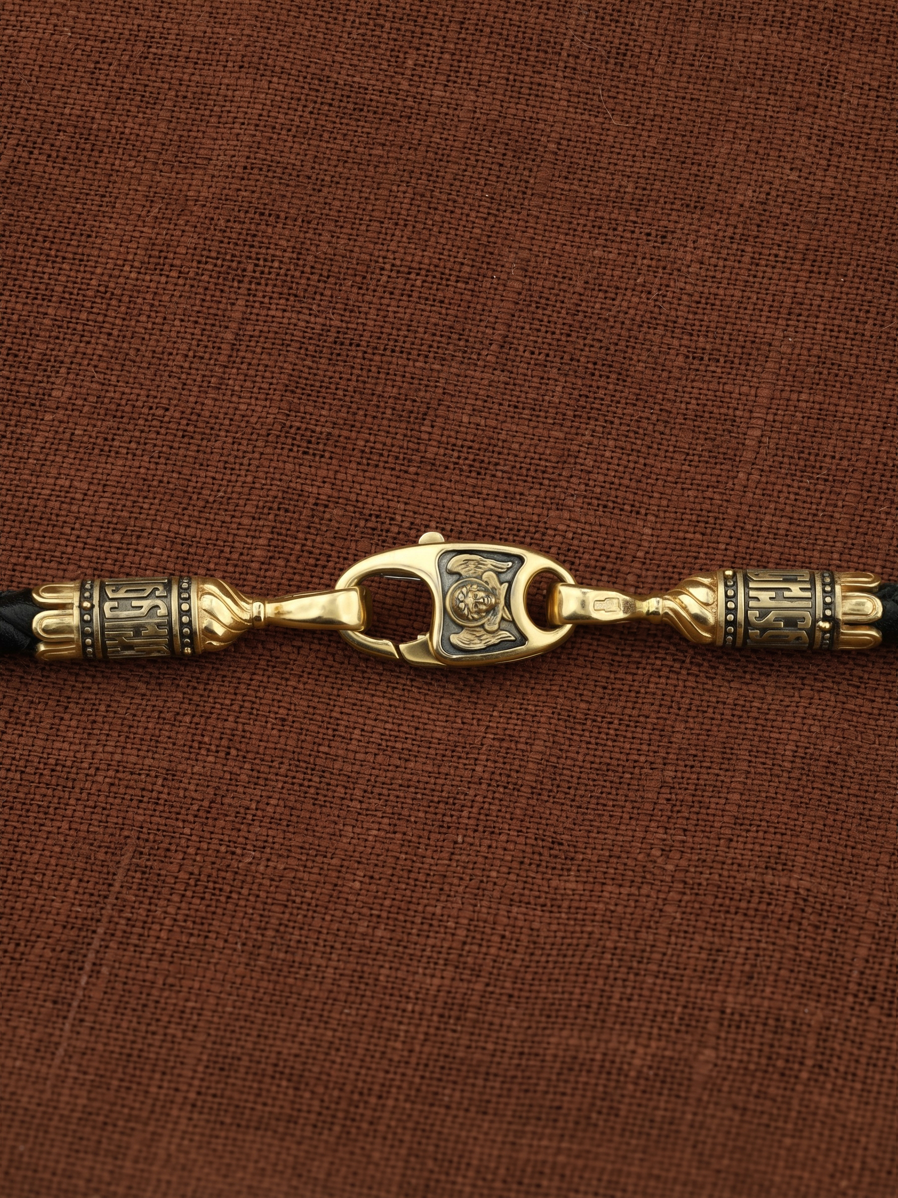 Гайтан из лимонного золота c кожаным шнурком