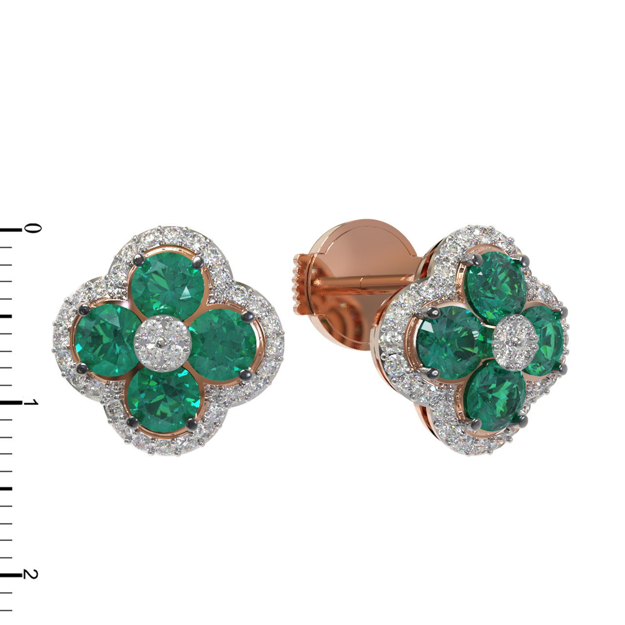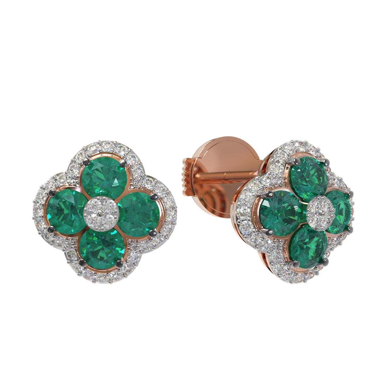 Роскошные серьги из красного золота 585 пробы из коллекции De Luxe Бриллианты — Fiore станут воплощением изысканности в вашем образе. Дизайн украшения, выполненный в форме цветка, притягивает взгляд своей гармонией и вниманием к деталям. Центром композиции являются изумруды насыщенного зелёного цвета, которые создают великолепный контраст с тёплым оттенком красного золота. Огранка вставок круглой формы подчеркивает глубину каждого камня, придавая изделию особую выразительность.