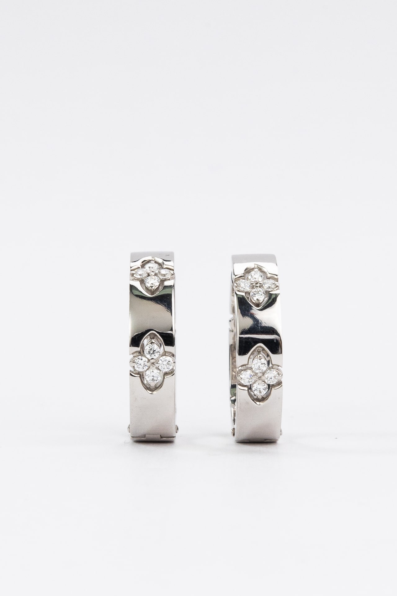 Центральным элементом композиции стали 32 бриллианта круглой огранки. Белые вставки расположены таким образом, чтобы максимально отражать свет, создавая завораживающую игру бликов при каждом движении. Изящная форма вставок добавляет украшению выразительности и делает его по-настоящему статусным аксессуаром.