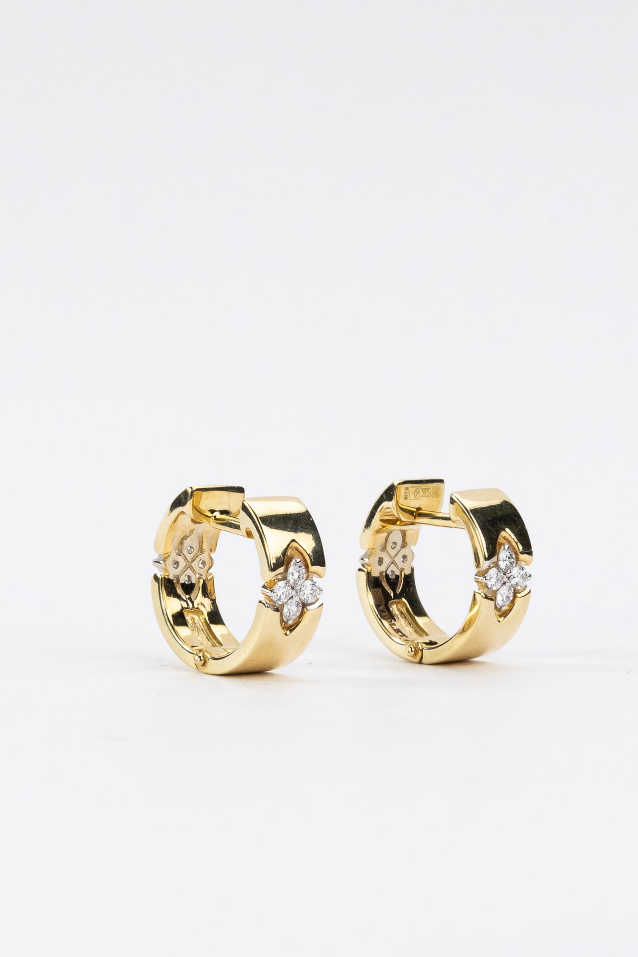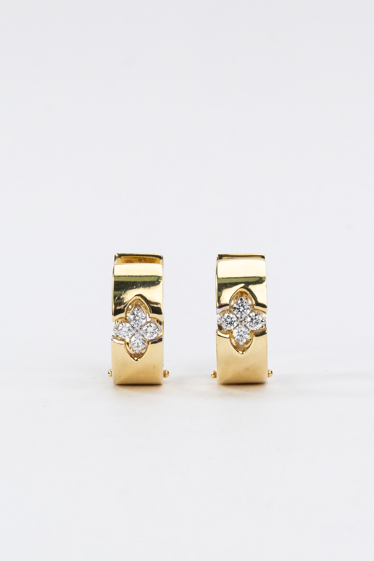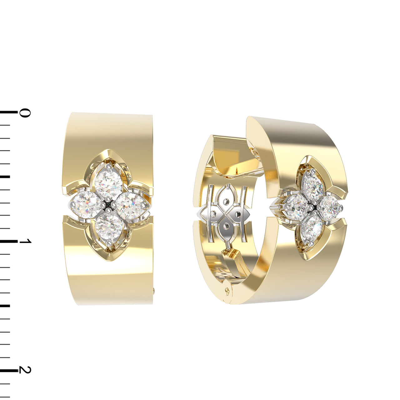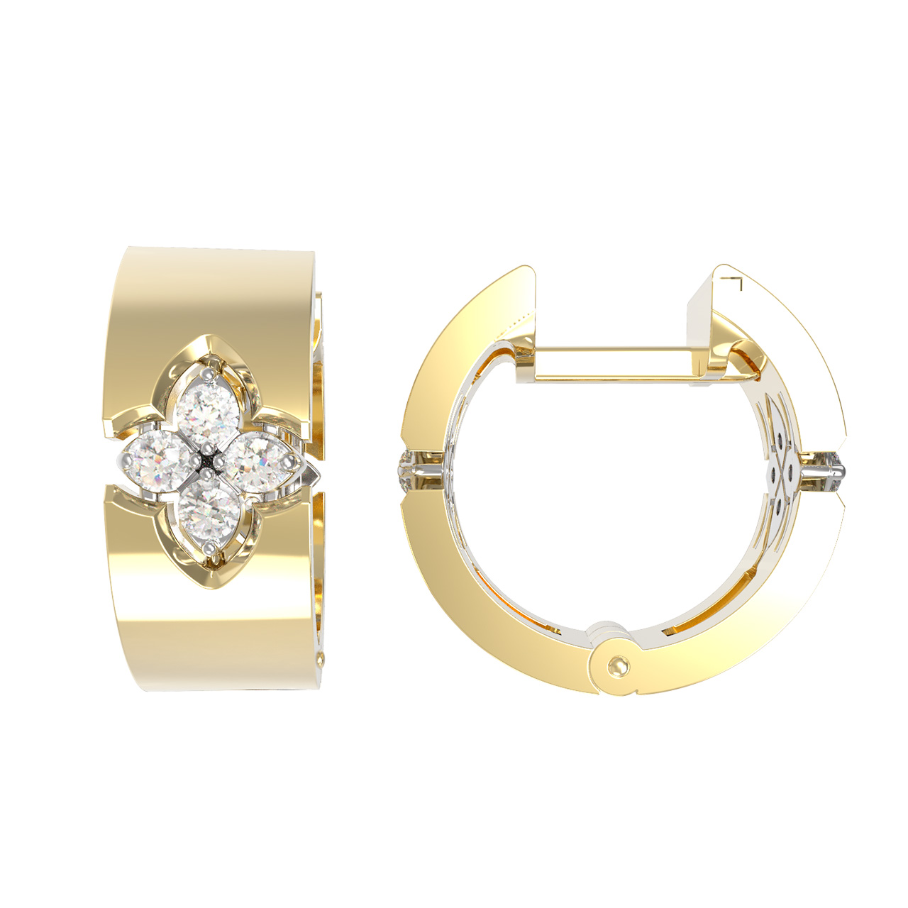 Элегантные серьги из лимонного золота 585 пробы — это воплощение статуса и безупречного стиля. Ювелирное изделие из коллекции De Luxe Бриллианты — Fiore притягивает взгляд своей лаконичной геометрией и благородным сиянием металла. Аксессуар выполнен в форме широких колец с полированной поверхностью, которая подчеркивает уникальный оттенок лимонного золота. Центральным акцентом композиции стала изысканная вставка в виде флористического орнамента, инкрустированного 16 бриллиантами круглой огранки. Белые камни эффектно контрастируют с теплым тоном металла, создавая яркую и глубокую игру света при каждом движении.