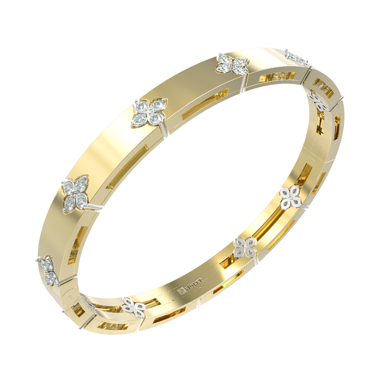 Роскошный характер браслета подчеркивают 352 бриллианта круглой огранки. Белый цвет вставок эффектно контрастирует с лимонным золотом, создавая гармоничную композицию. Это украшение создано для тех, кто ценит ювелирное искусство и внимание к деталям. Универсальный дизайн позволяет носить изделие как женщинам, так и мужчинам, подчеркивая индивидуальный стиль владельца.
