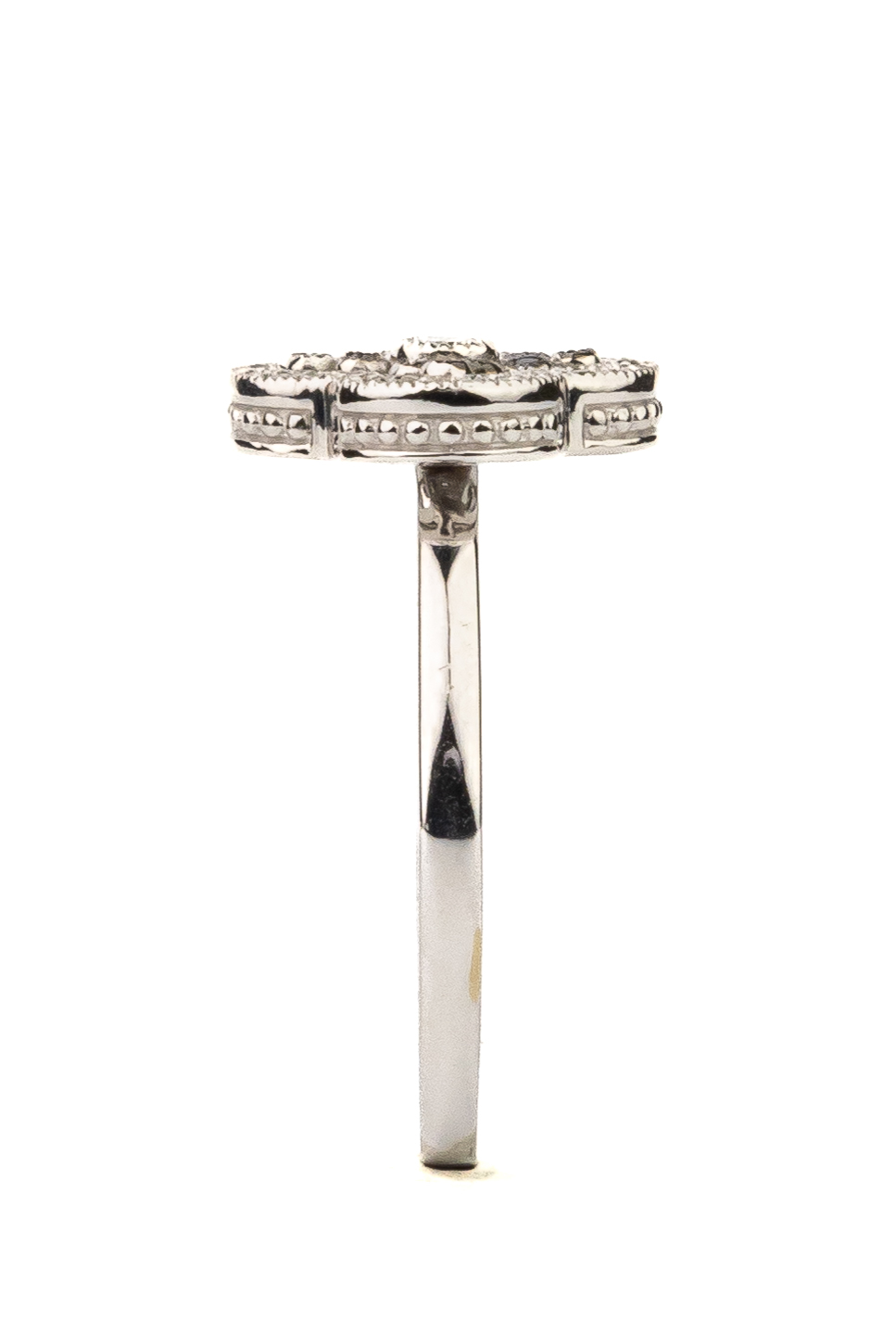 Особую ценность модели придает инкрустация: 45 бриллиантов круглой формы с чистым белым цветом вставок создают завораживающую игру света, переливаясь при каждом вашем движении. Ювелирный аксессуар выглядит лаконично, но при этом статусно, что позволяет сочетать его как с повседневными образами, так и с вечерними нарядами. Такое кольцо подходит как для женщин, так и для мужчин, предпочитающих утонченные детали в своем стиле.