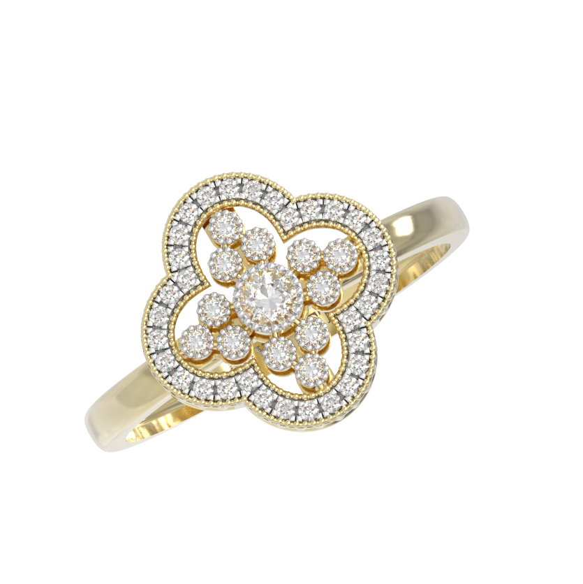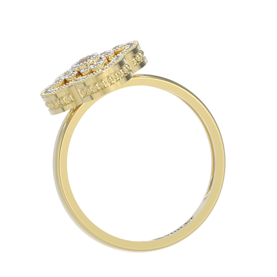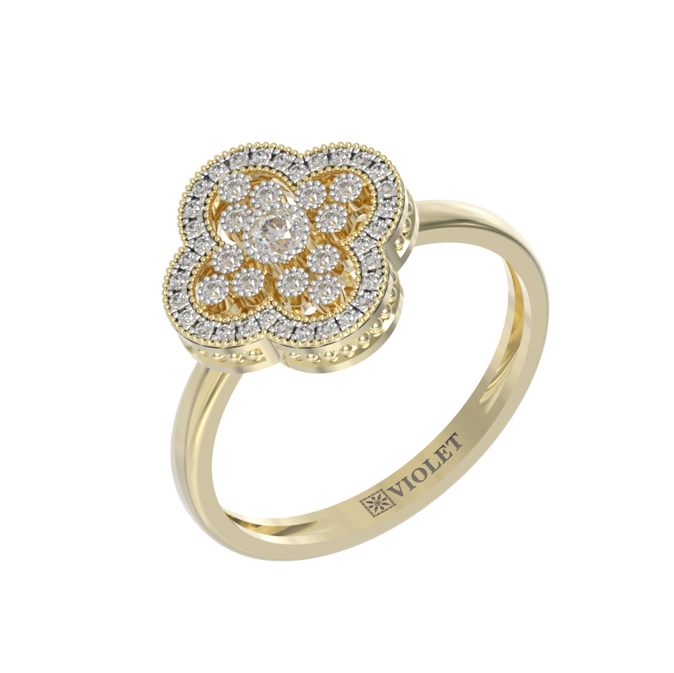 Кольцо из лимонного золота с бриллиантами из коллекции De Luxe Бриллианты — Fiore станет изысканным акцентом вашего образа. Это ювелирное украшение выполнено из благородного лимонного золота 585 пробы, которое подчеркивает теплоту и глубину драгоценного металла. Центральным элементом дизайна является декоративная часть в форме цветка, инкрустированная 45 бриллиантами круглой огранки. Белый цвет вставок эффектно контрастирует с ярким оттенком металла, создавая гармоничное и притягательное сочетание.