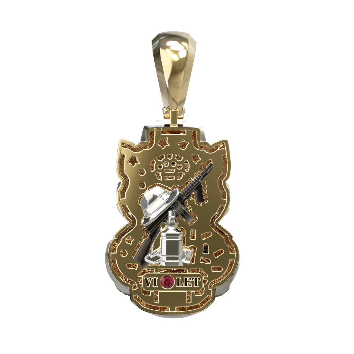 Подвеска из лимонного золота c эмалью, бриллиантами и рубином