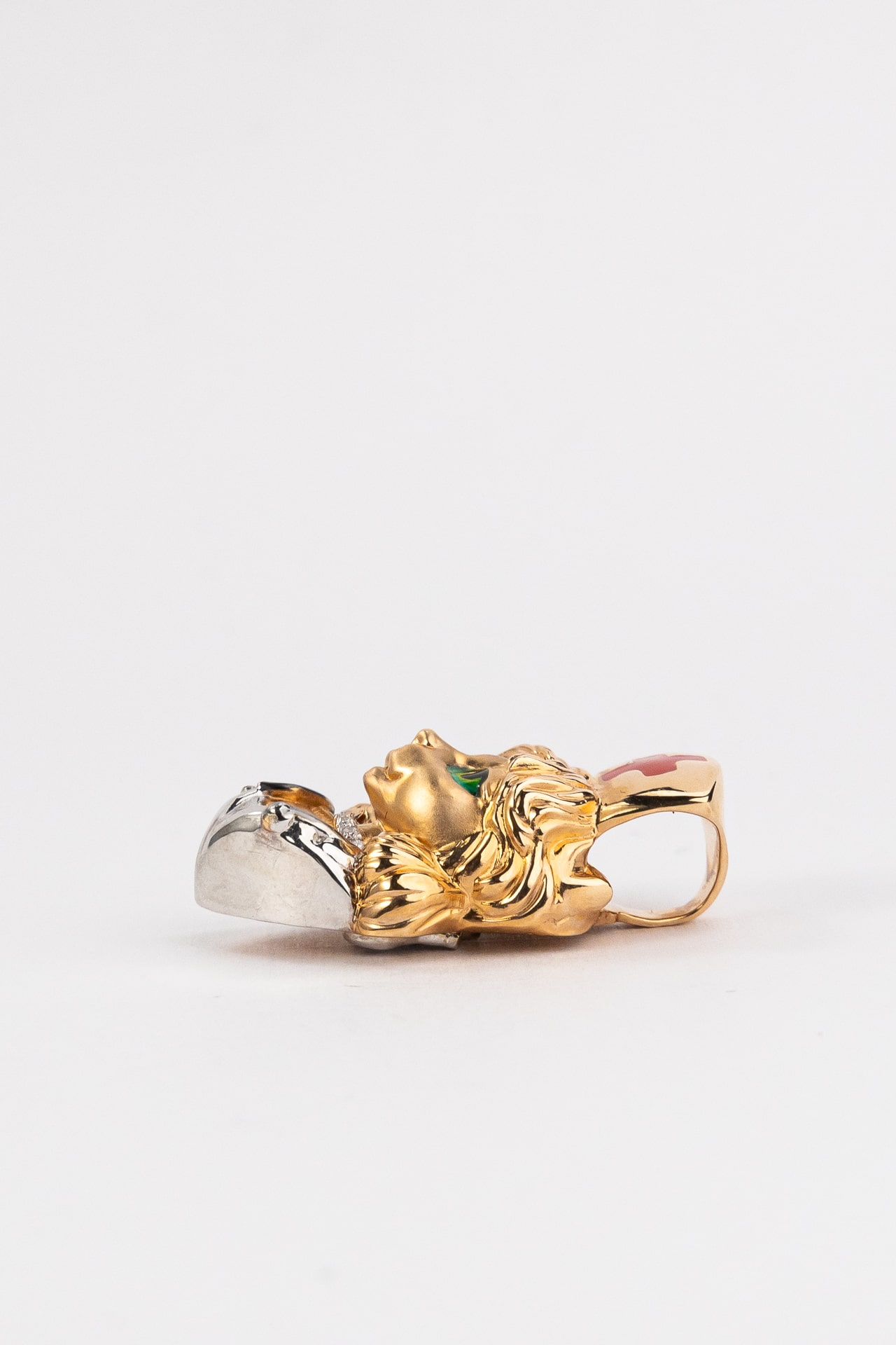 Универсальность дизайна позволяет носить эту подвеску как женщинам, так и мужчинам, предпочитающим смелые ювелирные решения. Благодаря качественным материалам и продуманной композиции, это изделие станет прекрасным дополнением к вашей коллекции или ценным подарком для близкого человека. Добавьте в свой стиль нотку иронии и безупречного ювелирного мастерства с этой оригинальной подвеской из красного золота.